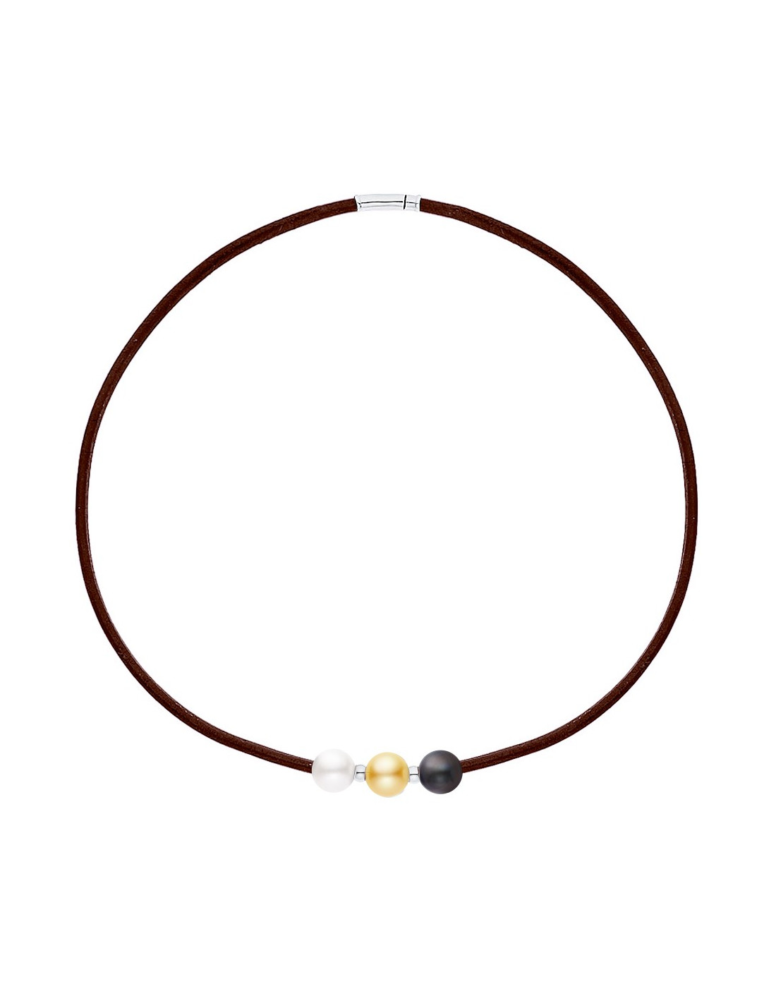 Braune Lederhalskette 3 True Perlen und Silberkirschen