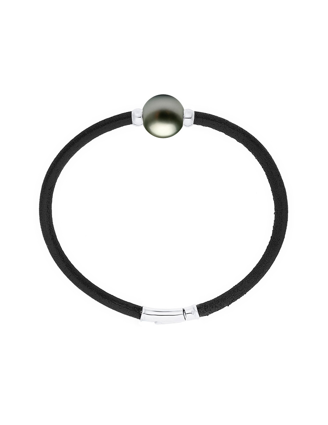 Tahitian Tahitian Kultur Perle 10-11 mm Kulturperlen, umgeben von Silber Silber Silber - Neopren / Rhoded Silber 925 Tausend Anrufverschluss - kommt mit dem Echtheitszertifikat und internationaler Garantie - Herstellung in unseren Workshops
