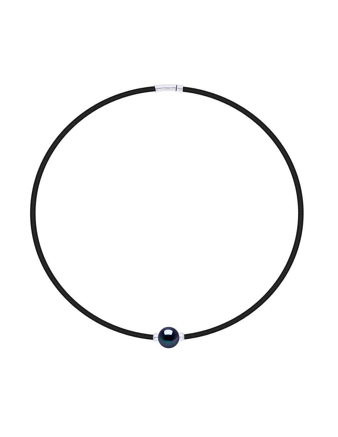 Neopren-schwarze Kultur Perle Halskette - 925 Silber - Nisyros