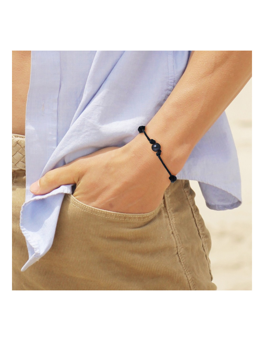 Verstellbares Link-Armband mit schwarzer Perle - Moso