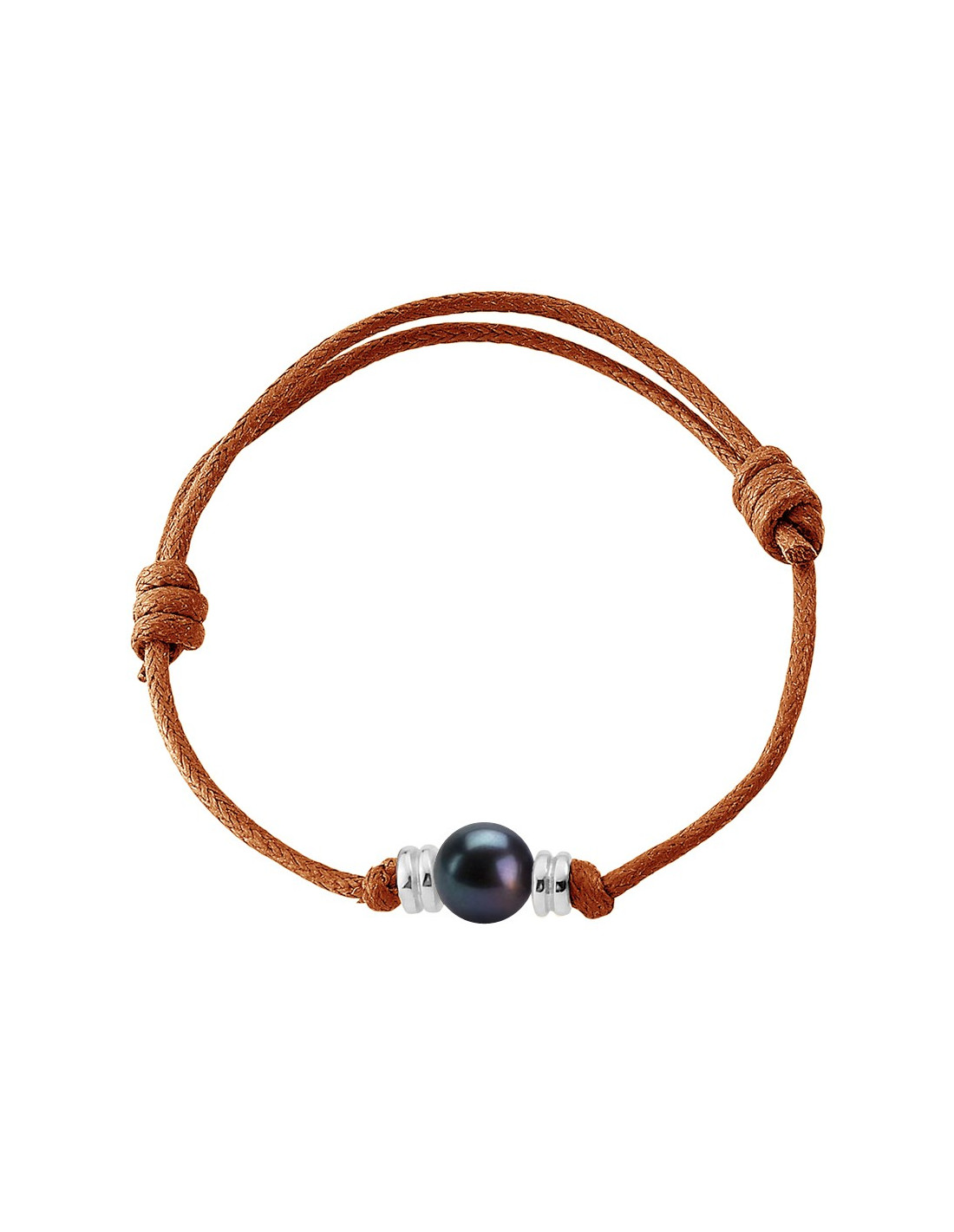 - Gleitknoten, die mit einer echten Süßwasserkultur-Perle 9-10 mm und Silberhülse geschmückt sind