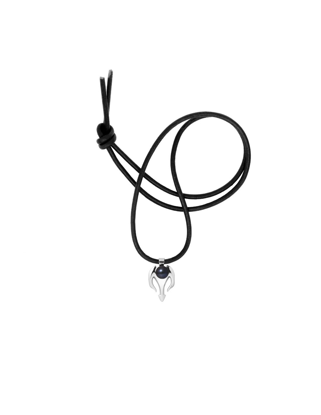Schwarze Leder-Tribal-Halskette und schwarze Kultur Perle - 925 Silber - Kaikane