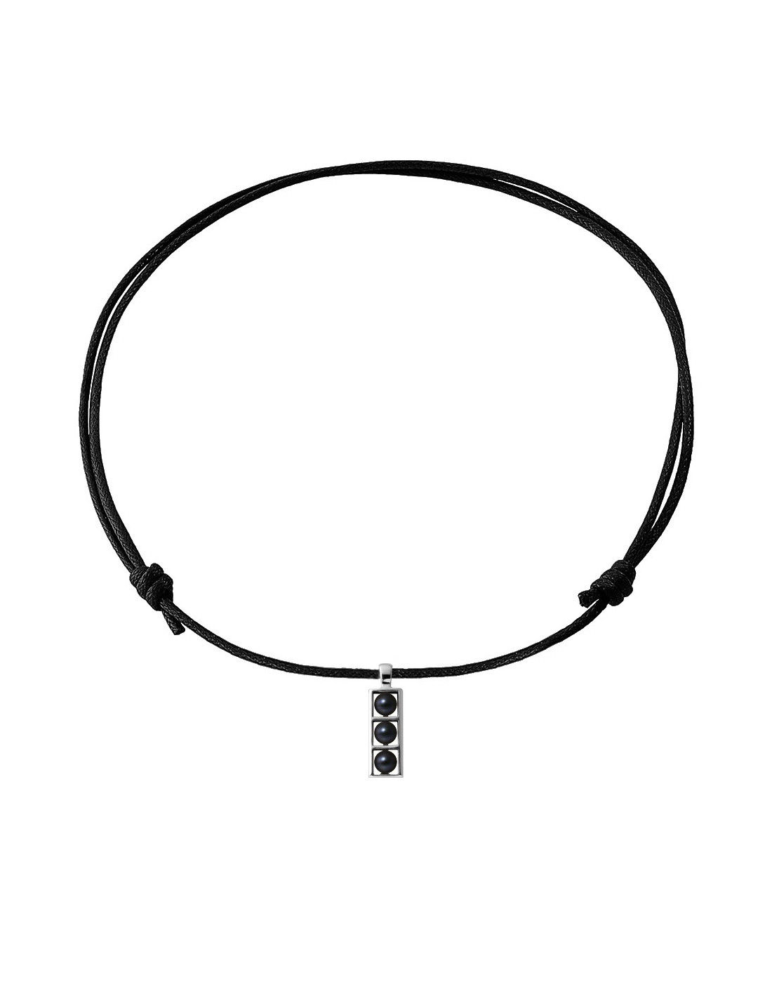 Verstellbare Link-Halskette mit 3 schwarzen Kultur-Perlen - Silber 925 - Unkuru