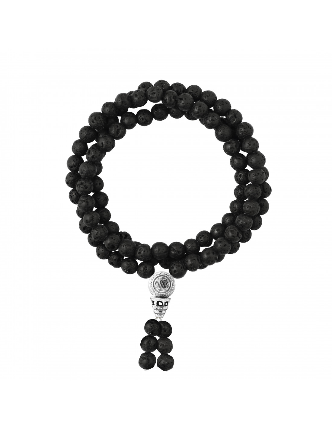Tibetisches Armband Triple klingelte in natürlichem Lava-Stein - Silberverschluss 925 - OYA