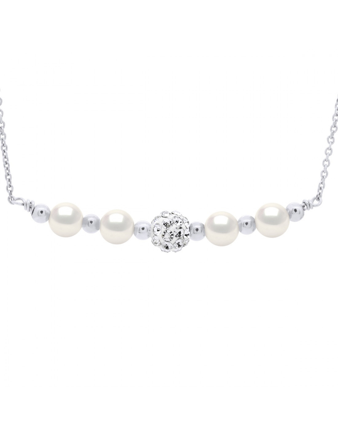 Kultur-Perlen-Halskette 6 mm und Kristall-Preciosa - 4 Farben - Silber 925 - Garance