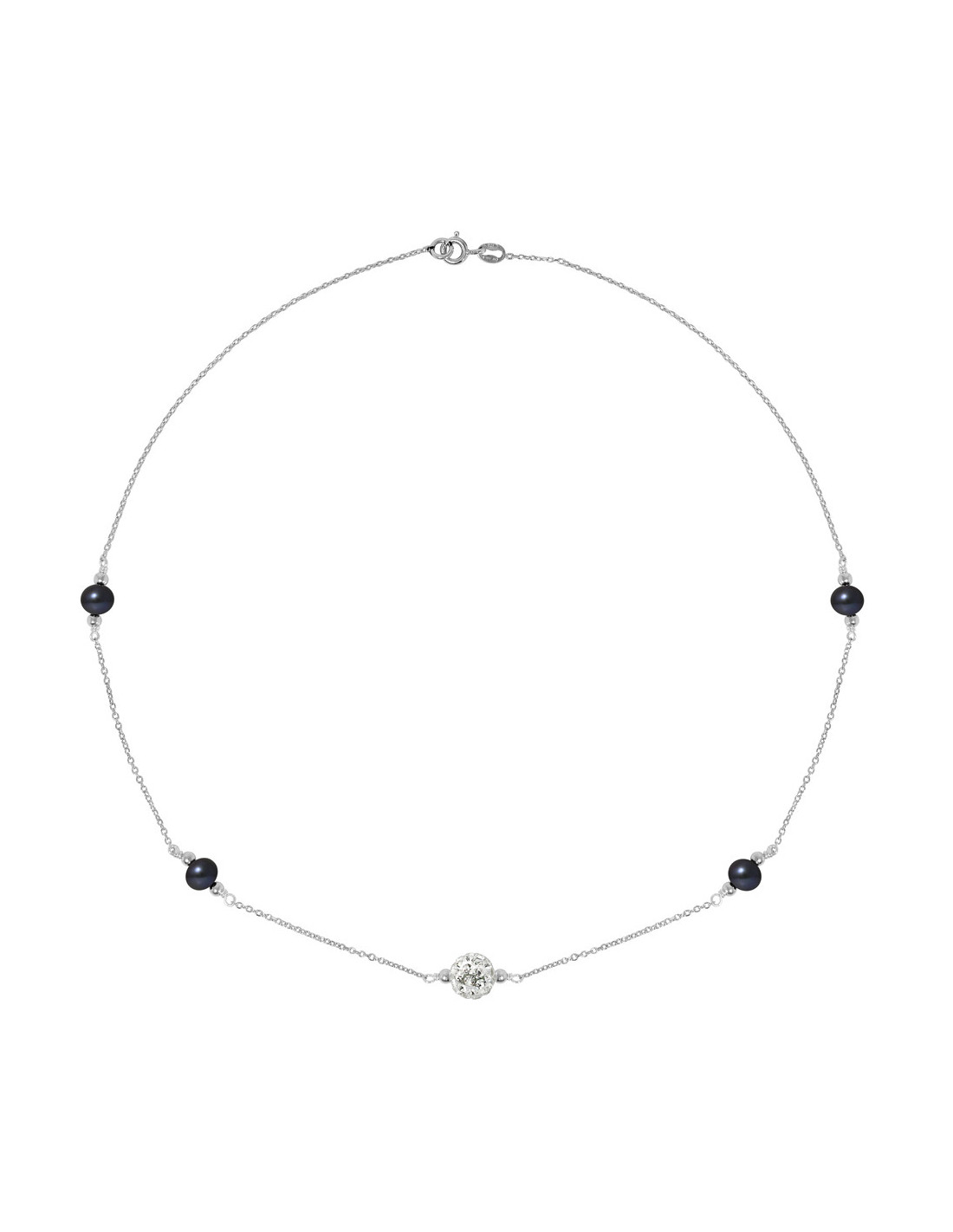 Kettenhalskette, Kristall-Preciosa und runde Kultur-Perlen 5 mm Alternative - Silber 925 - Linua