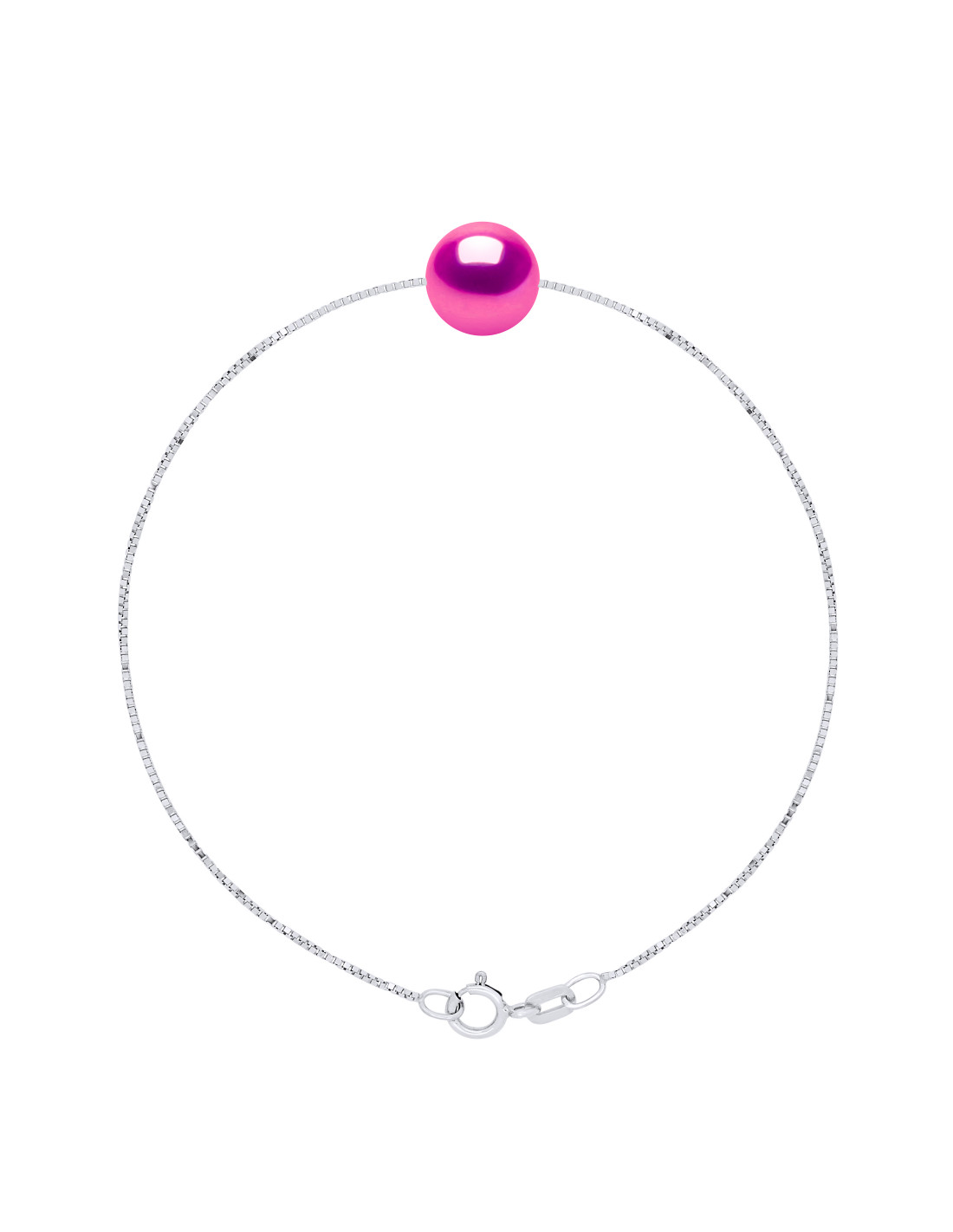 Kettenarmband mit 8mm Runder Kultur Perle - 5 Farben - 925 Silber - Amber