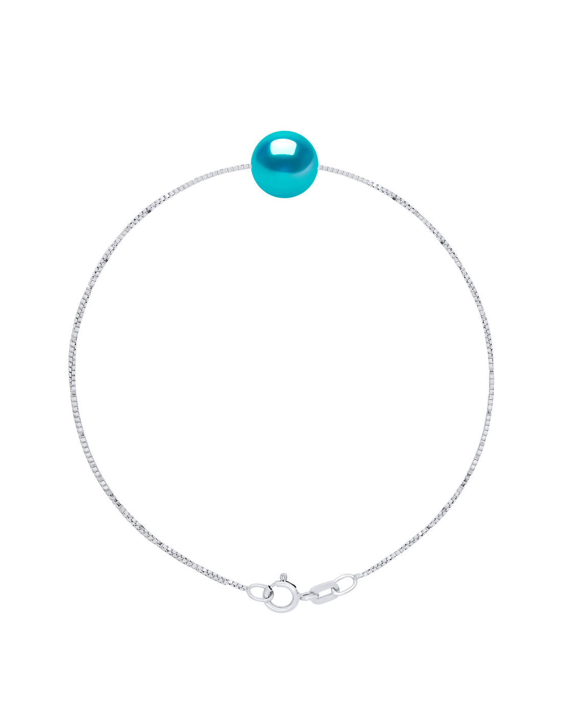 Kettenarmband mit 8mm Runder Kultur Perle - 5 Farben - 925 Silber - Amber