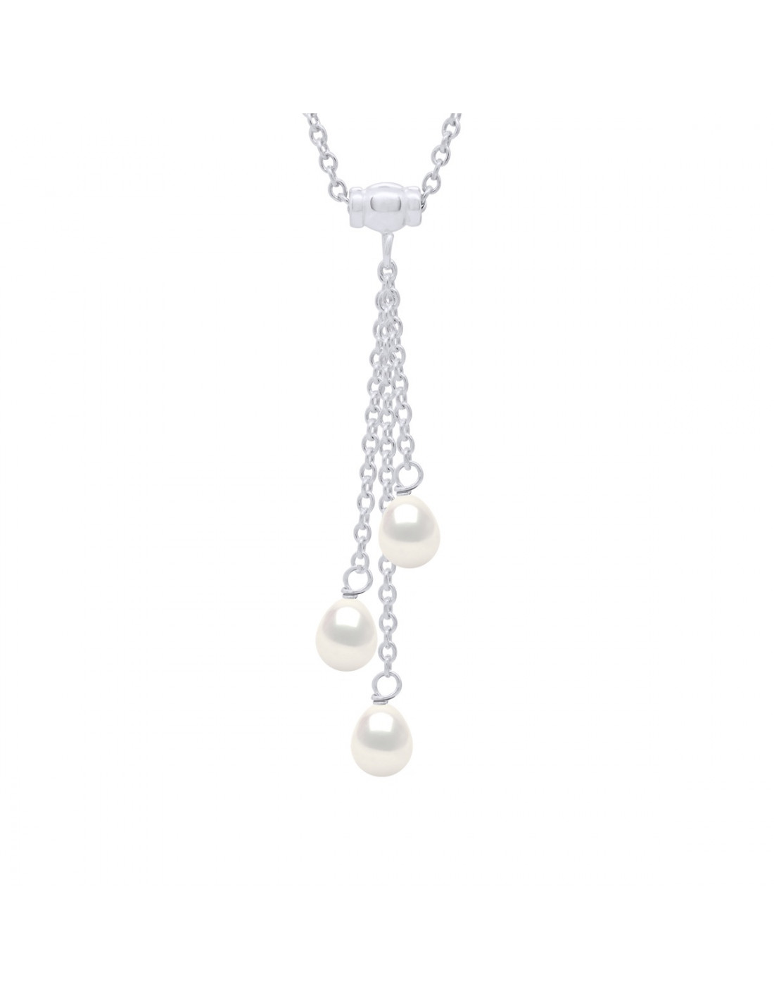 - Talisman-Halskette 3 echte Frischwasserkulturperlen Birnen 6-7 mm