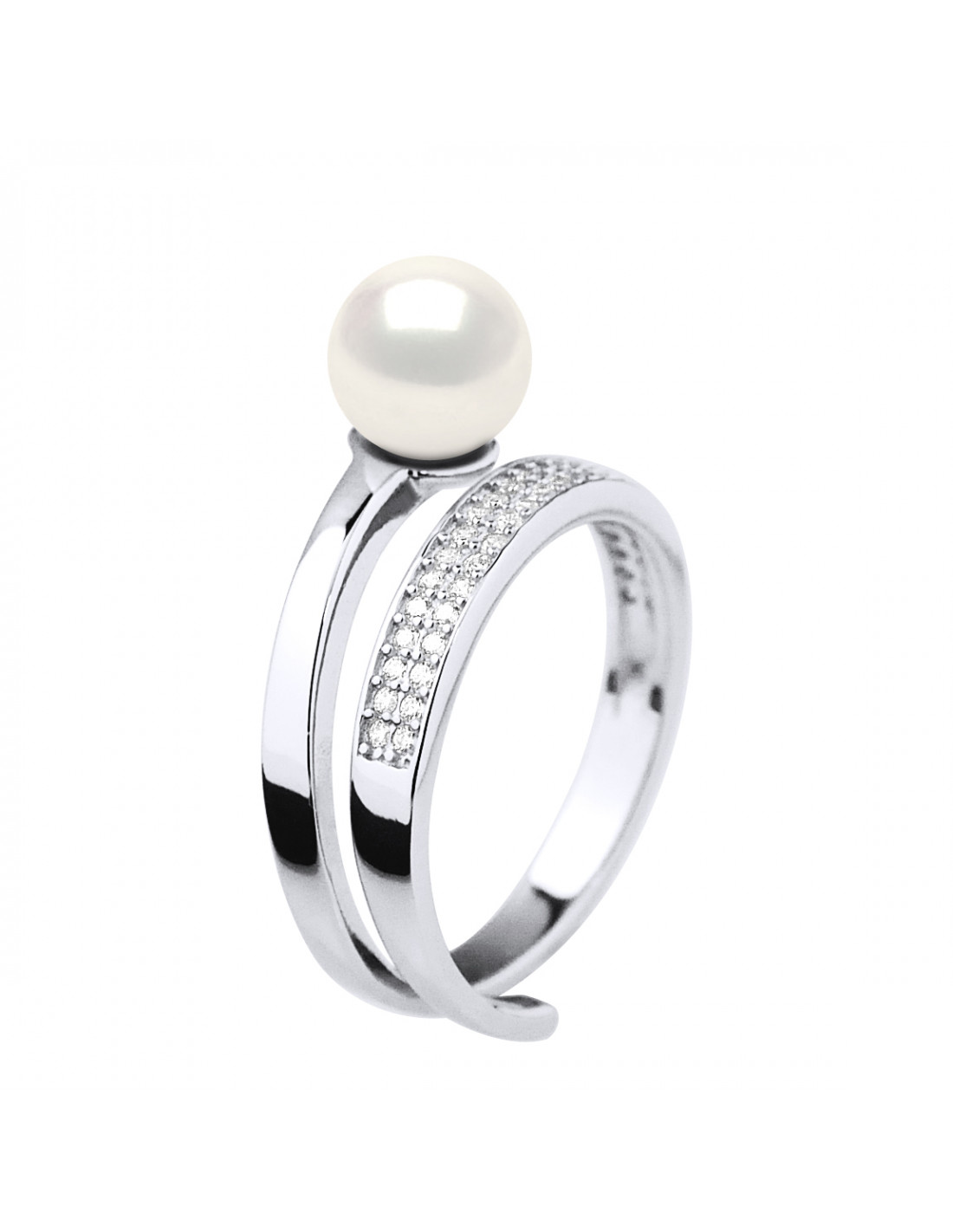 Silberring und Zirkoniumoxide mit kultivierter Perle 7 mm - Myra