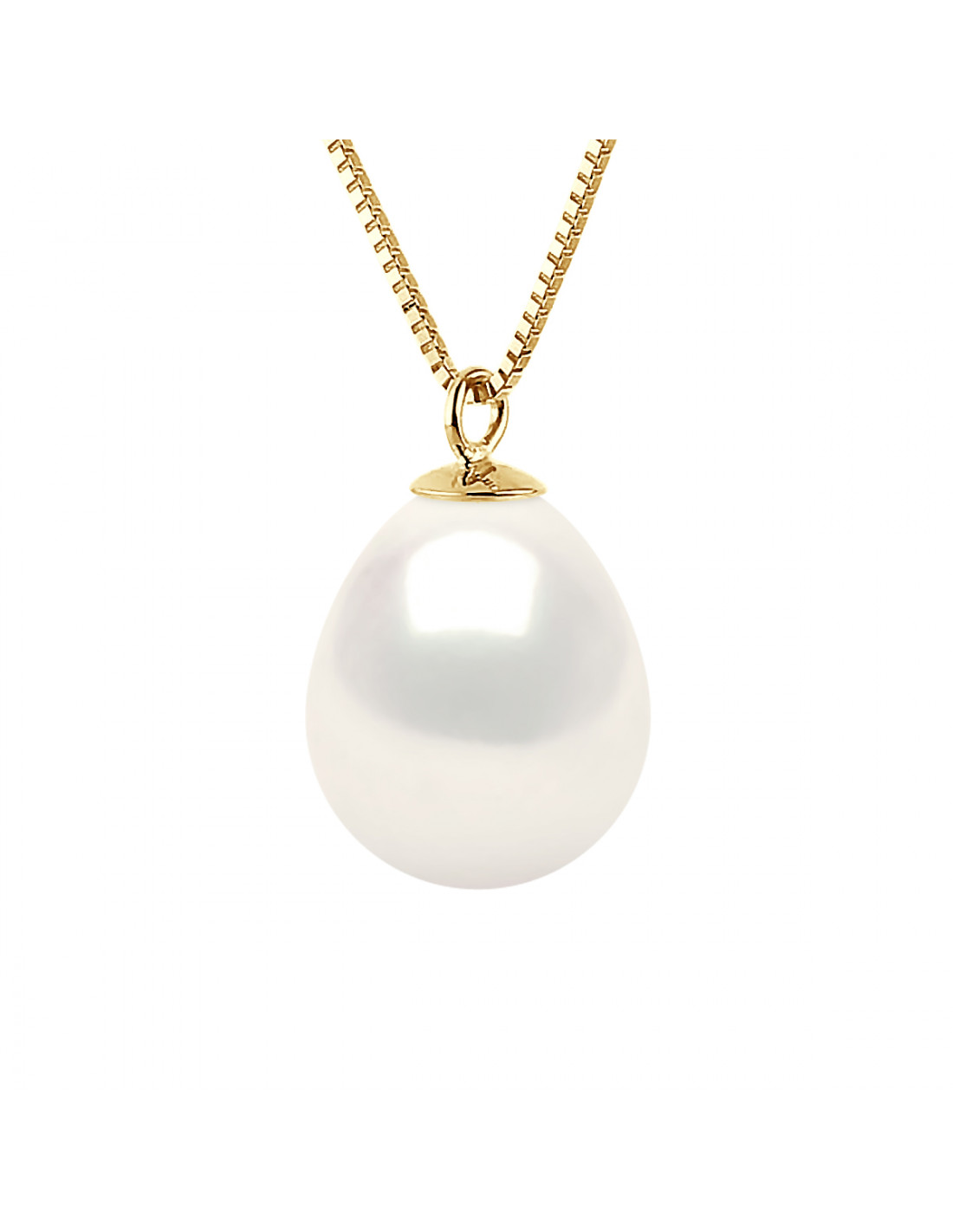 Gelbgold- oder Weißgold-Halskette und Birne 9-10 mm Birnenperlen - 5 Farben - Linie