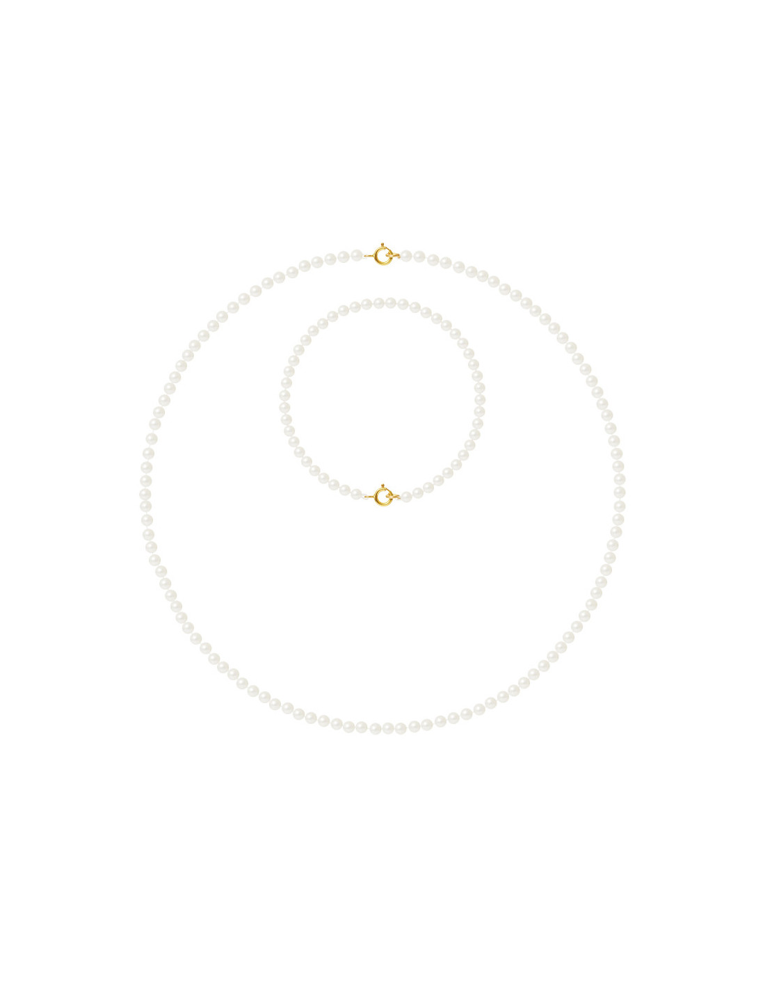 Halsketten-Set und Armband in echten runden Süßwasserkultur-Perlen 3-4 mm
