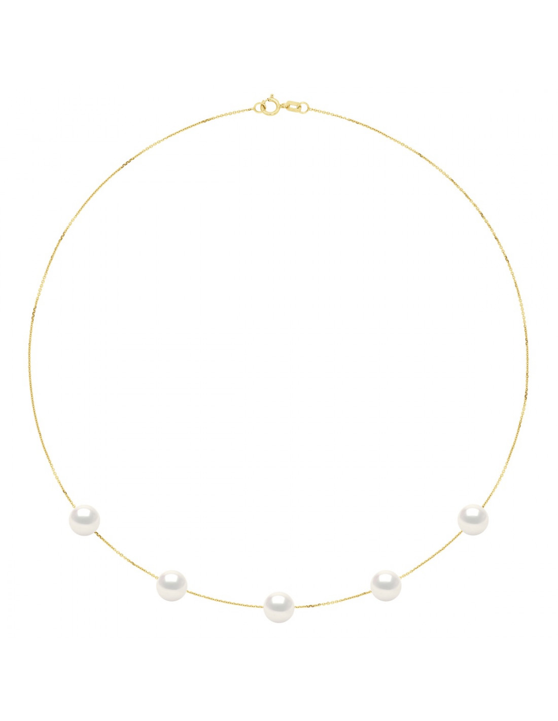 - Gold Halskette mit 5 realen runden Süßwasserkulturperlen 8-9 mm
