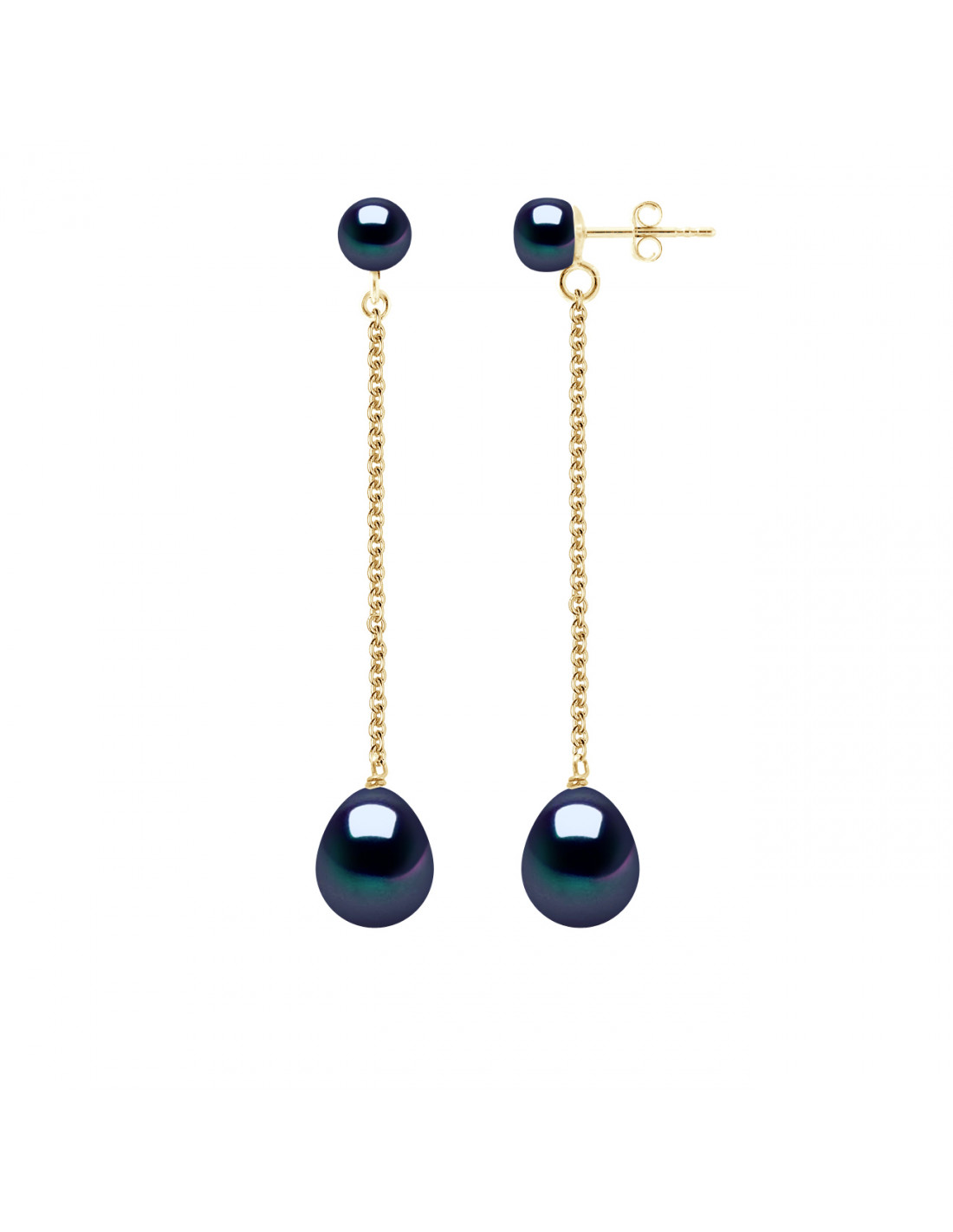Doppelgold Doppelohrringe und Kulturperlen 9 mm - 2 Farben - Elena