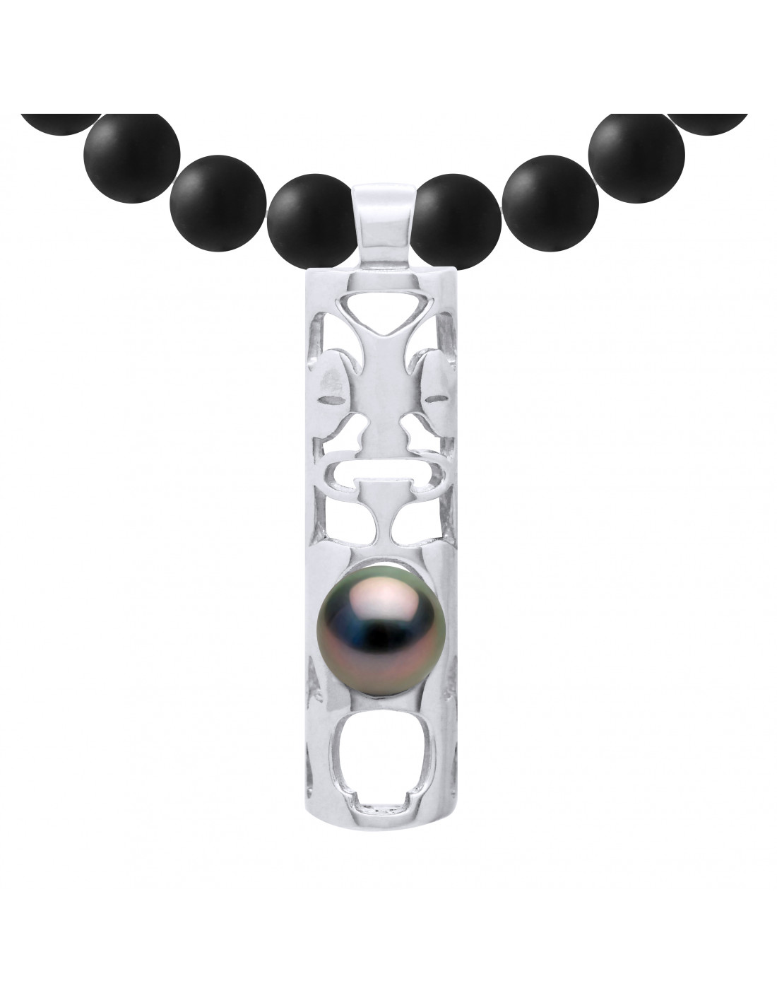 Tikki Pearl Halskette Tahiti Runde 8-9 mm in Schwarz Achat Matte - Silber 925 - MOA