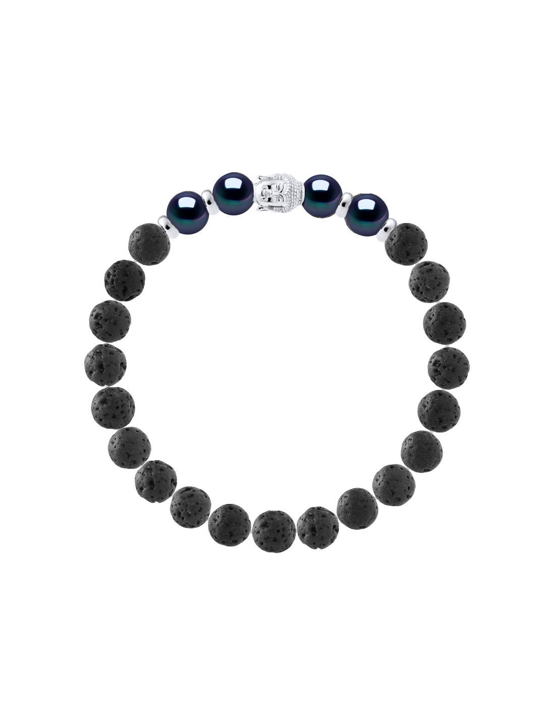 Buddah-Armband Perle der schwarzen Kultur in Lave-Stein - Silber 925 - Amaru