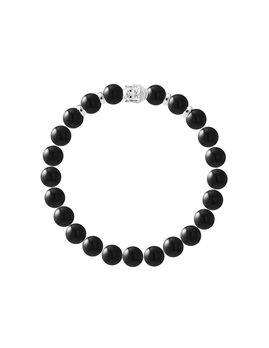 - Buddah tibetanische Armband- Konzentrationsmacht - echte schwarze Achat Matte - Buddah und Silber Silber 925 Tausendstel Rhodium -elastisch / Länge 19 cm - Geeignet für Handgelenk von 16 bis 18,5 cm