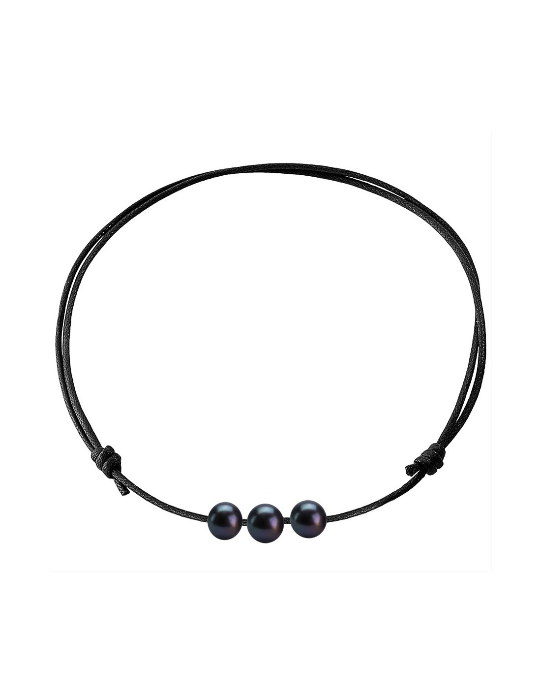 - Sliding knots adorned with 3 true round freshwater culture beads 9-10 mm