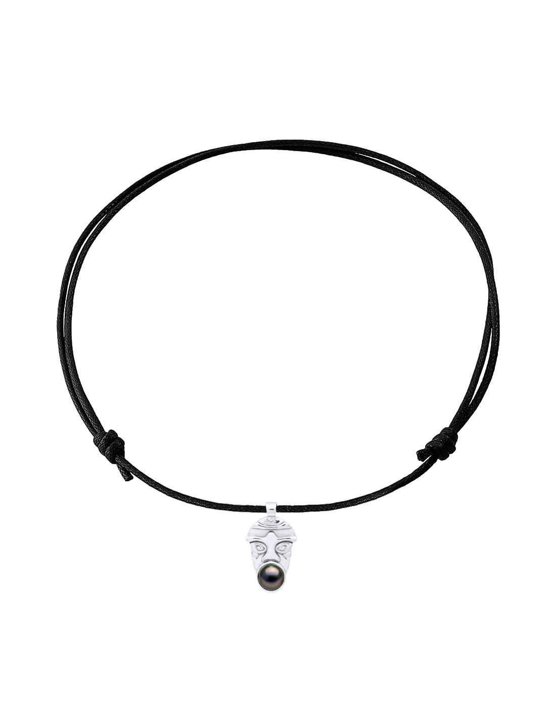- Color Black Color Necklace with Sliding Nodes Tiki Pendant Loved Tahiti Culture Bead Circle Circle 8-9 mm