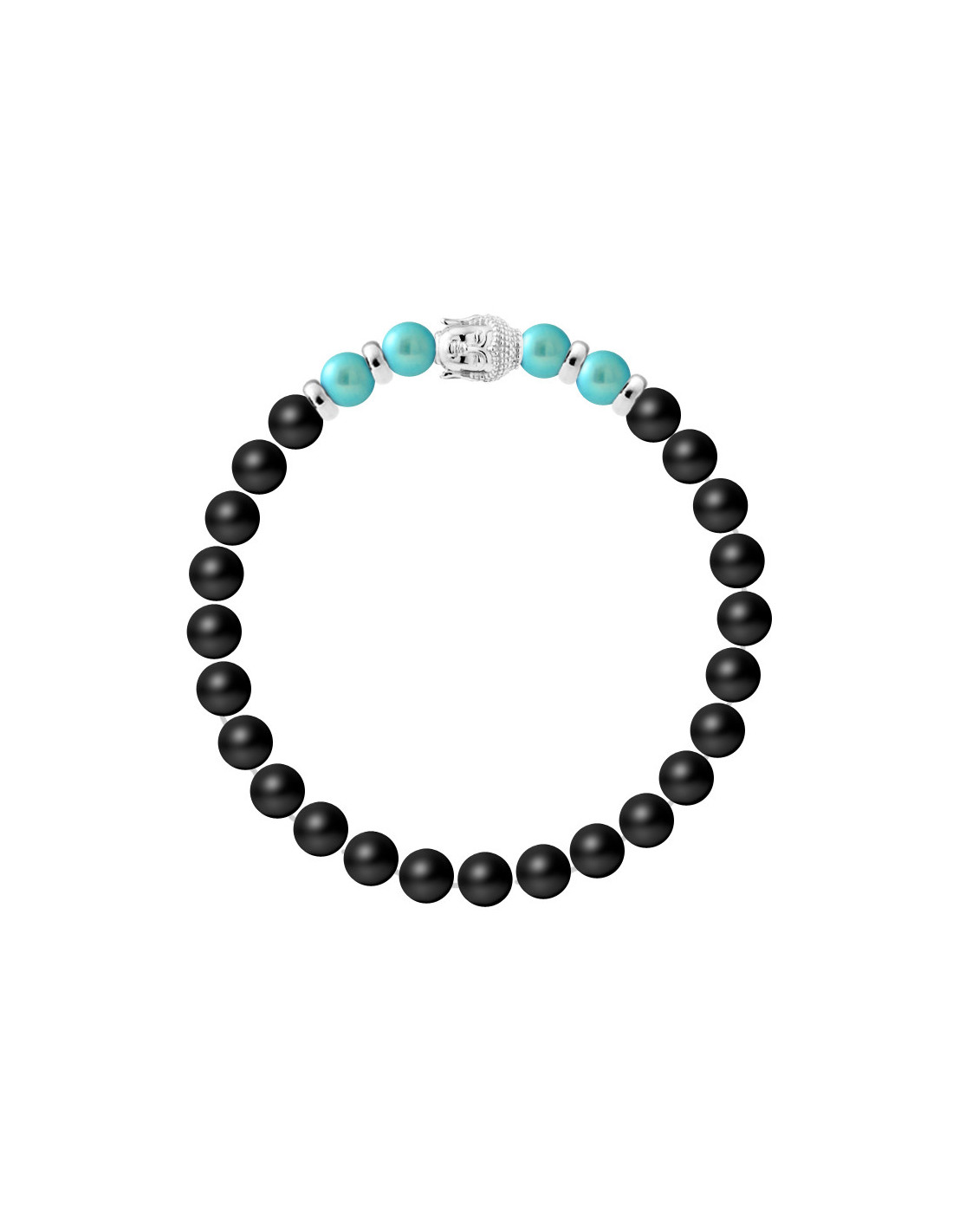 Buddah Bracelet Turquois Culture Beads 6-7 mm and Black Agate in 925 - Buddah