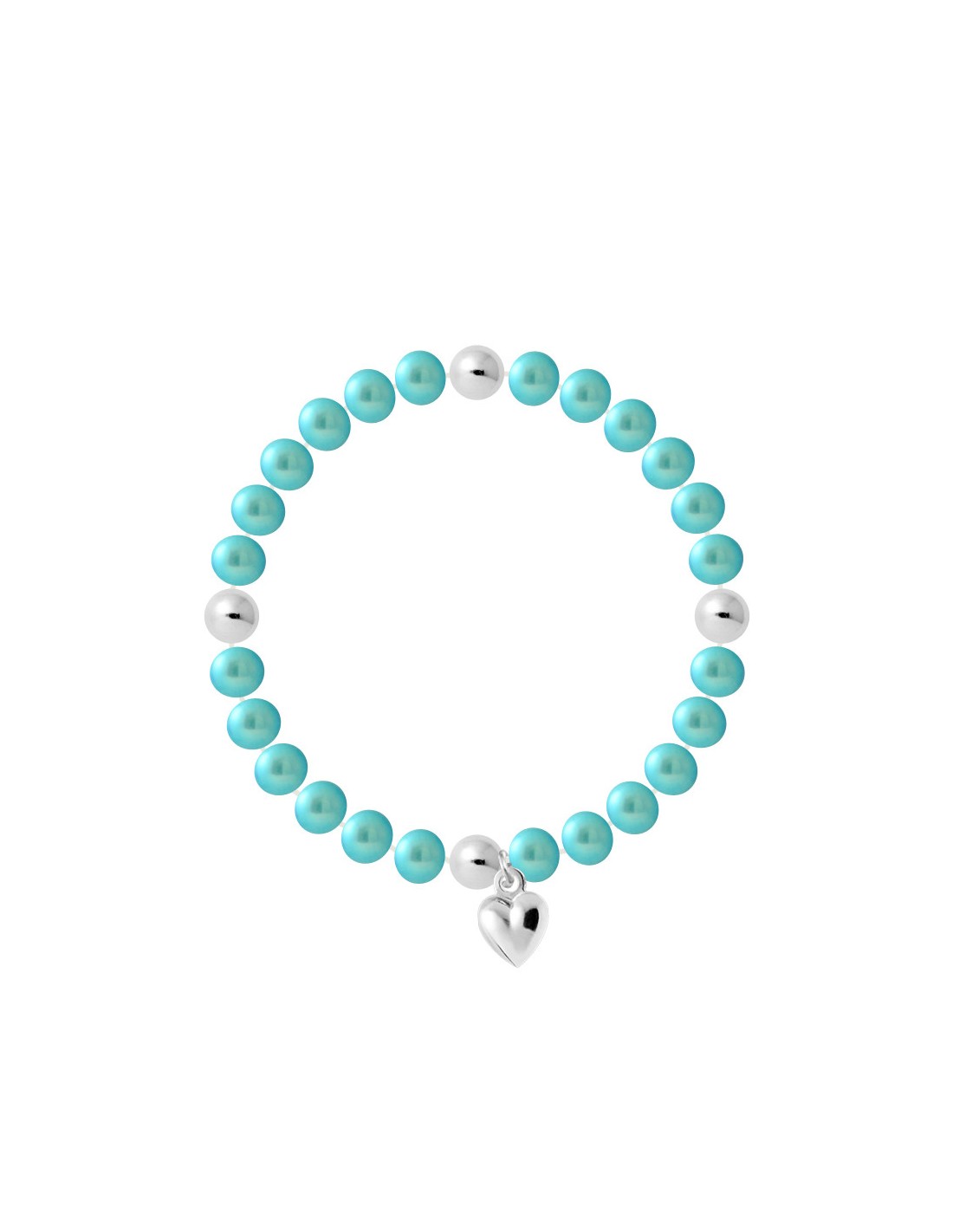 - Genuine Bracelet Fresh Water Culture Beads Semi Round 6-7 mm Alternated Silver Balls with Coeur Charque