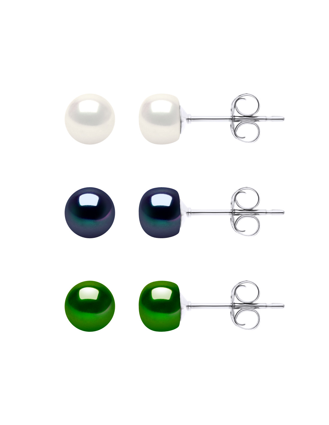 Box 3 pairs of 6 mm culture beads - Silver 925 - Enora Green
