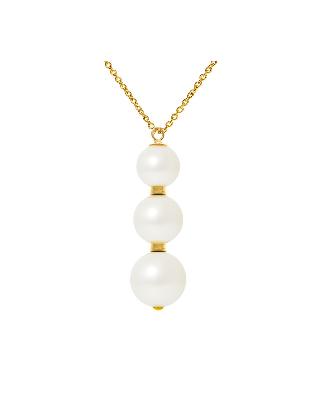 - Yellow gold necklace & 3 true round freshwater culture beads 7 to 9mm