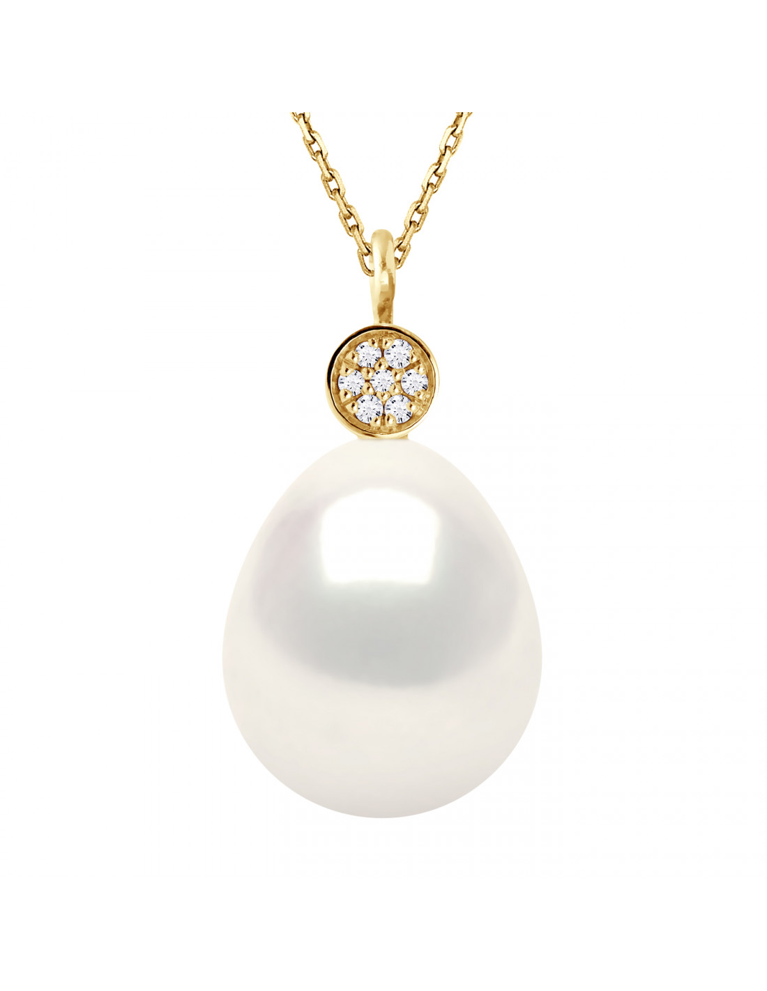 Gold Necklace and Diamonds Culture Bead 10 mm - 2 Colors - Clemence