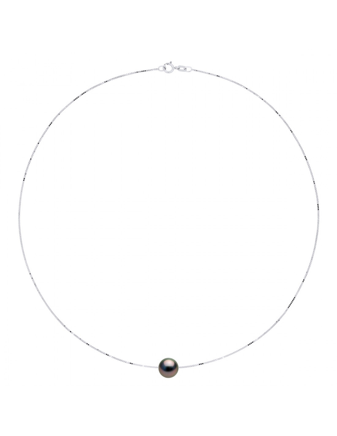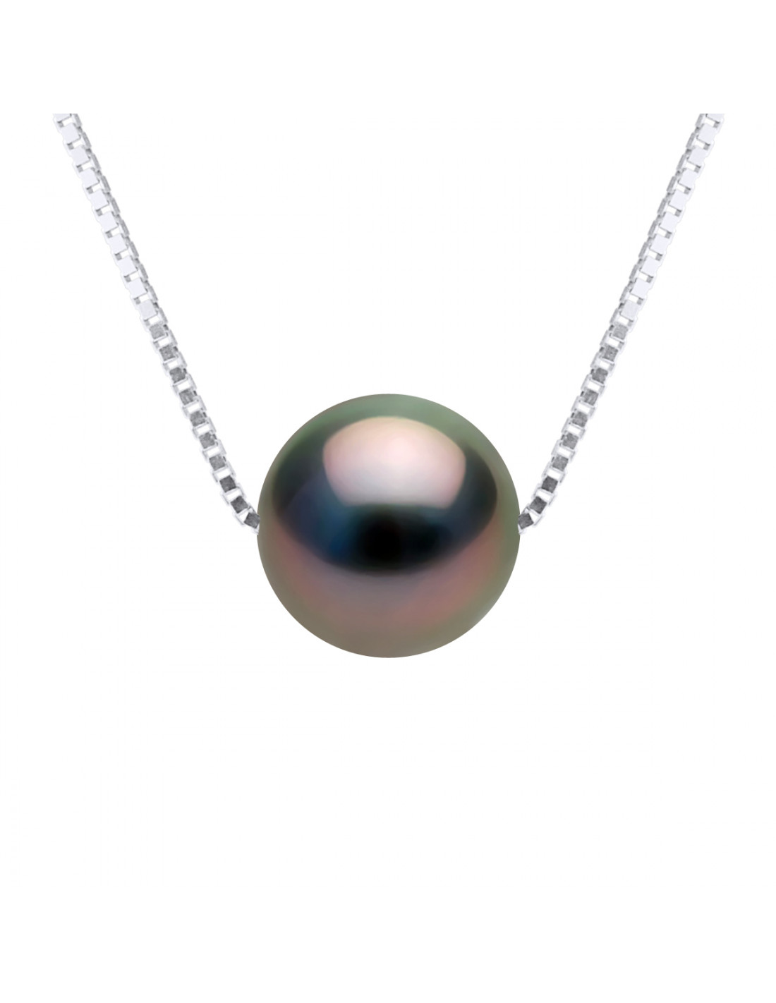 Silver Chain Necklace and Tahitian Beads Round 9 mm - Kuival
