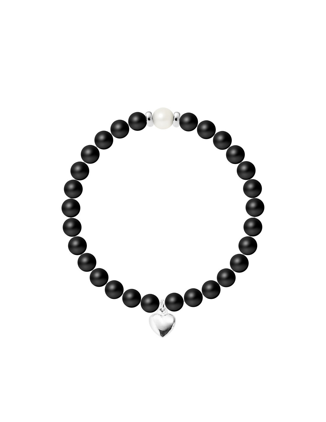 Pulsera de sangre del corazón - Cultura Pearl y Negro Agate Mate - 925 Silver - Naïla