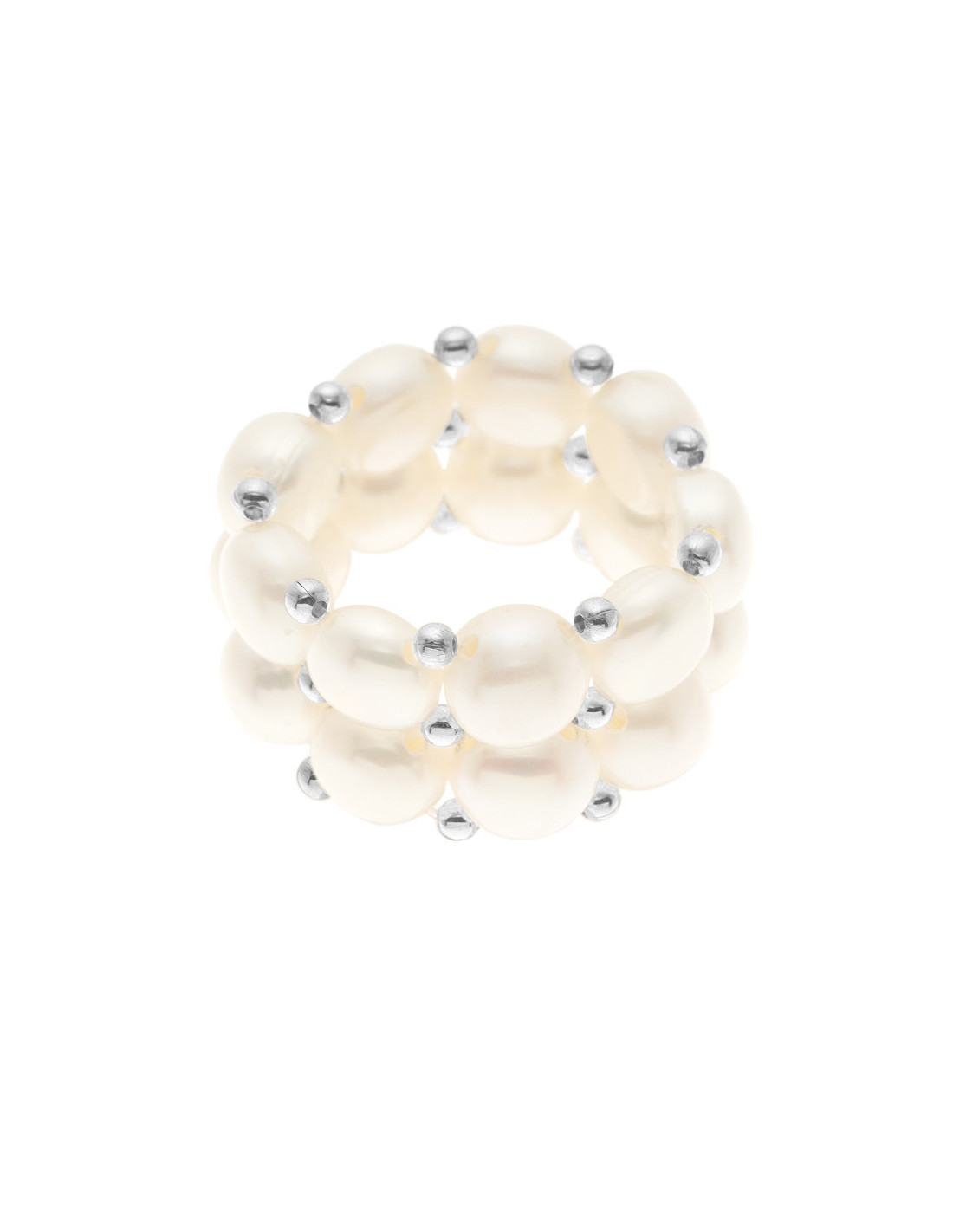 - Anillo 2-Rang en cuentas reales de agua 3-4 mm -