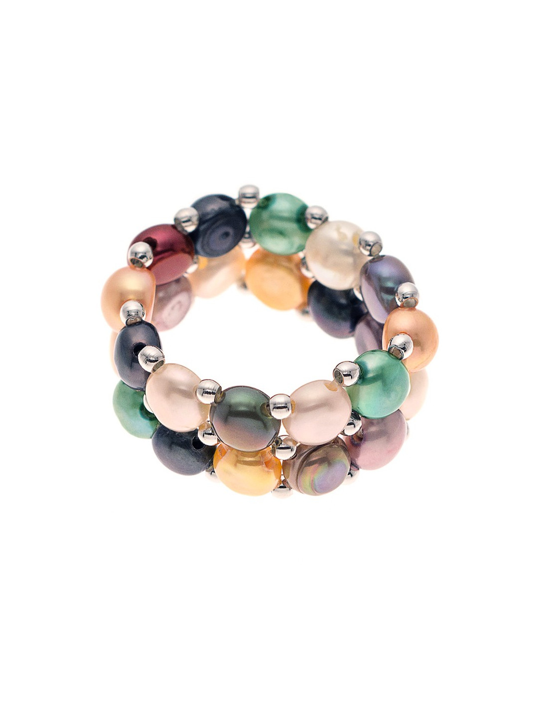 - Anillo 2-Rang en cuentas reales de agua 3-4 mm -