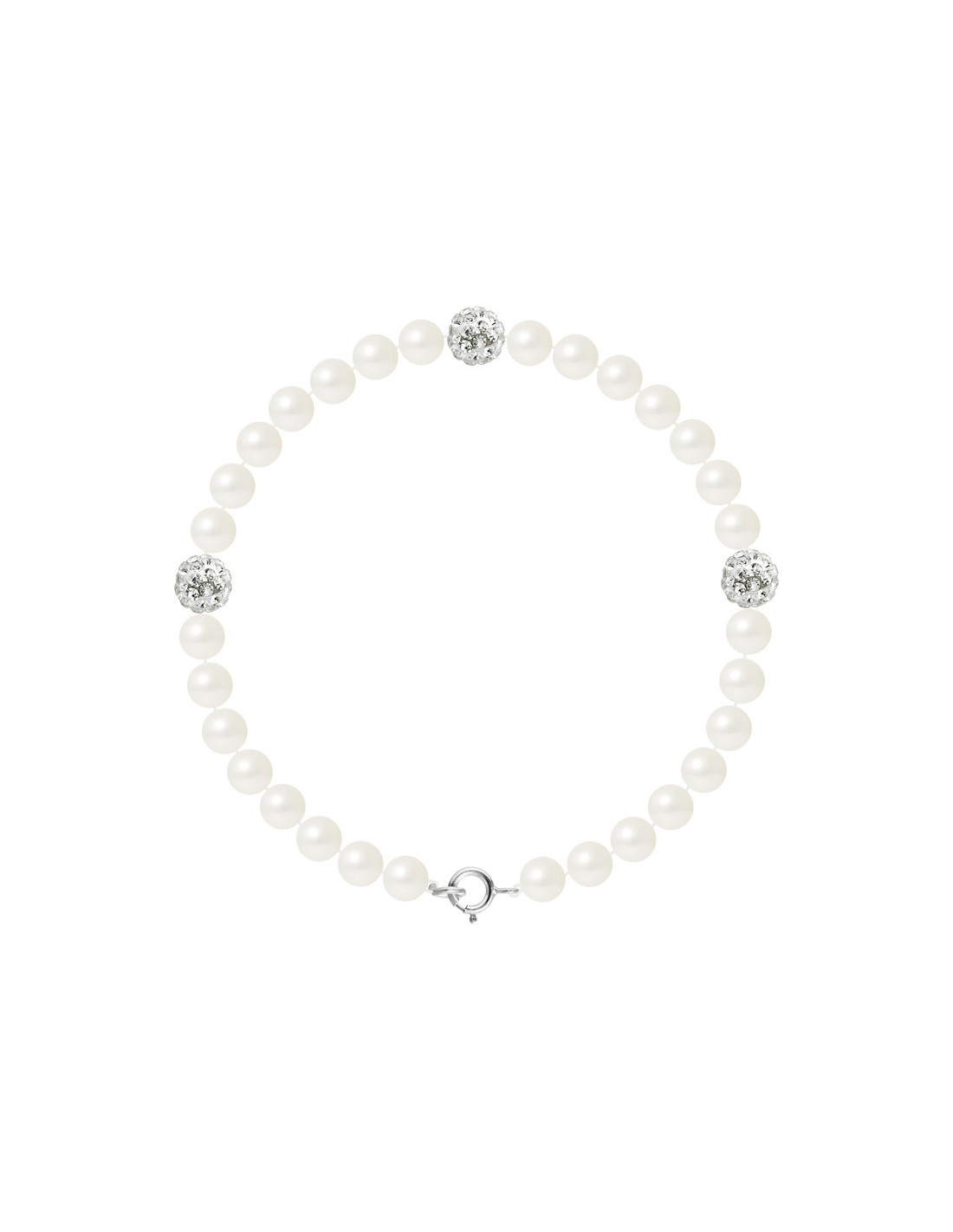 - cierre de anillo de primavera - alterna 3 bolas SERTÍAS CRISTAL CRISTAL BLANCO 6 MM - Longitud 18 cm