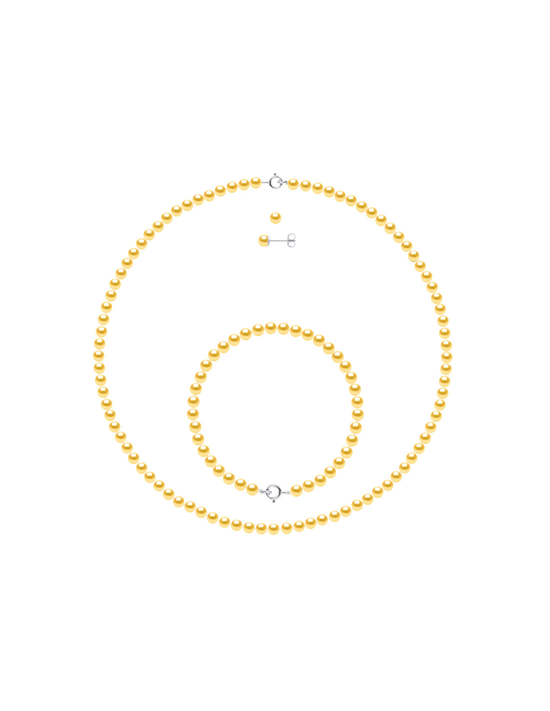 - Adhesión completa: Collar + Pulsera + Pendientes - Cultura de agua dulce redonda Perlas 4-5 mm