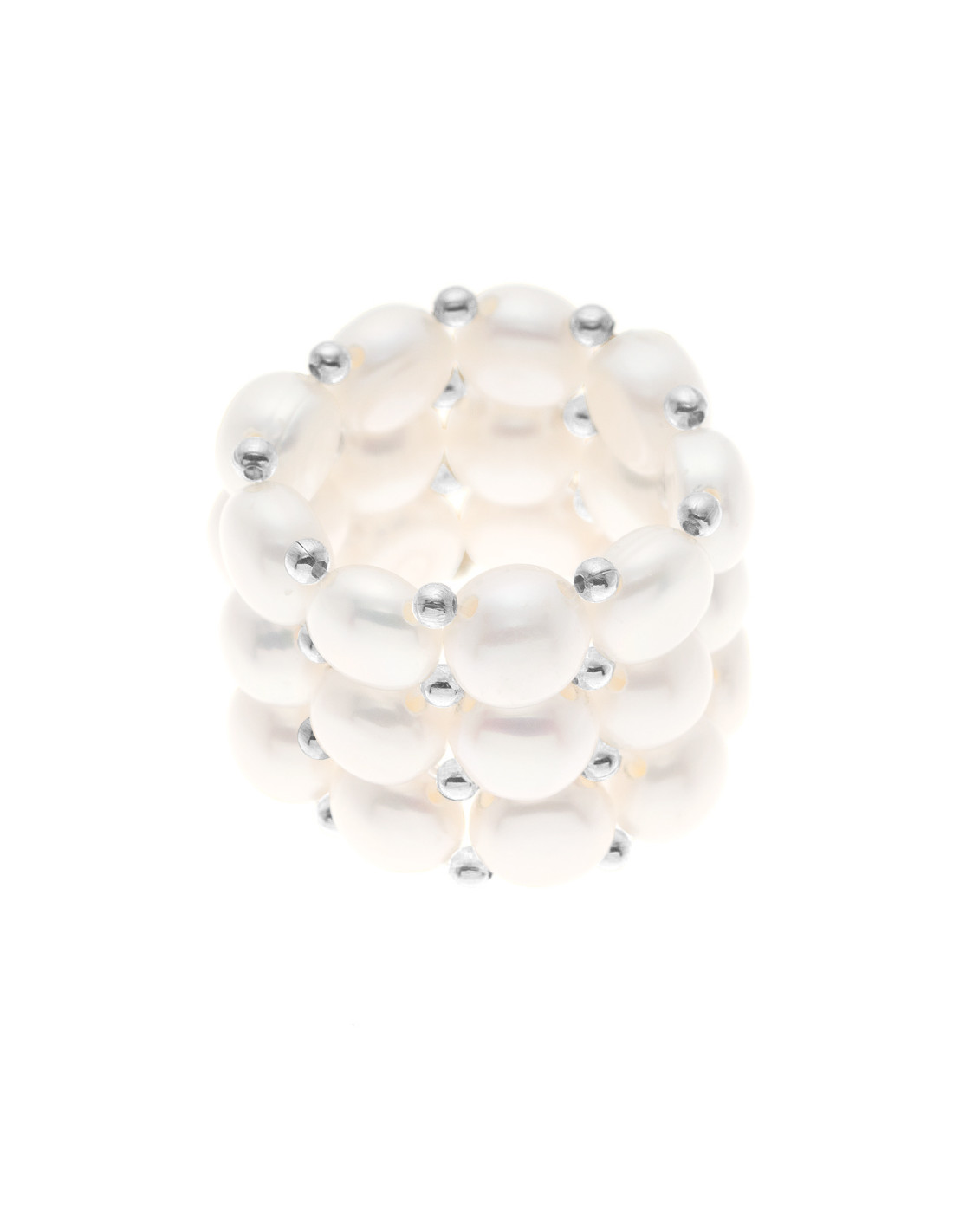 - Anillo 3 filas en perlas de agua dulce reales 3-4 mm -