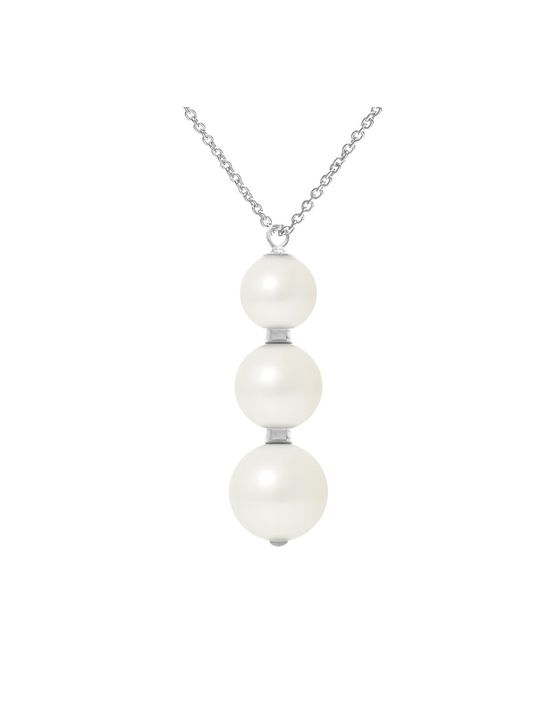 - Collar de oro y 3 perlas de cultivo fresco fresco genuino de 7 a 9 mm