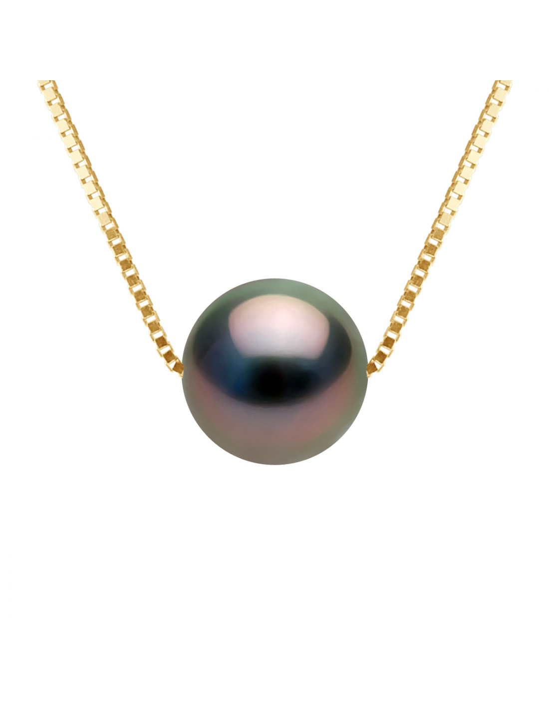 Collar de cadena de oro y cuentas redondas de Tahitian 9 mm - Makano