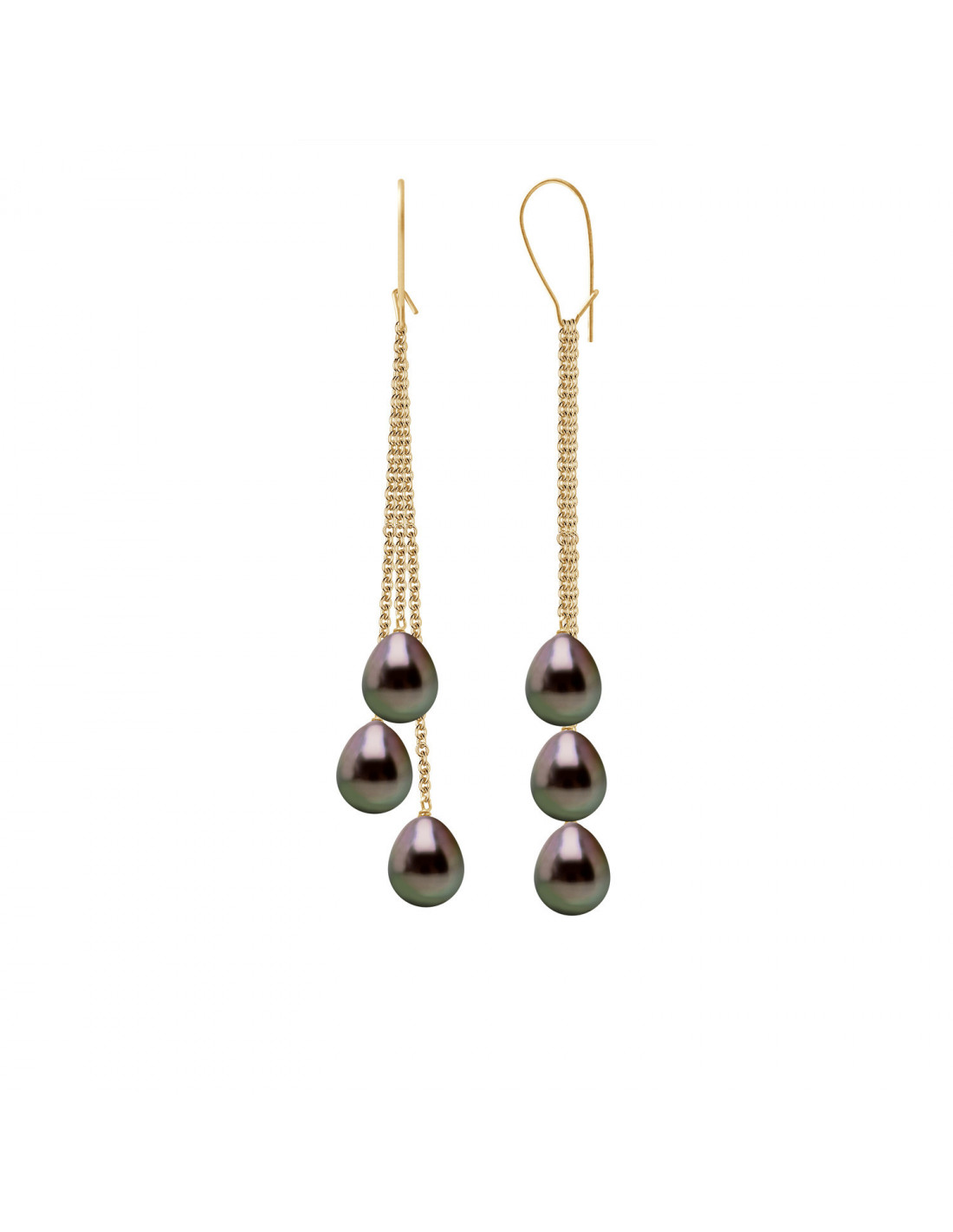 Pendientes de colgantes de oro con 6 cuentas tahitian 8 mm Poir - Magarava