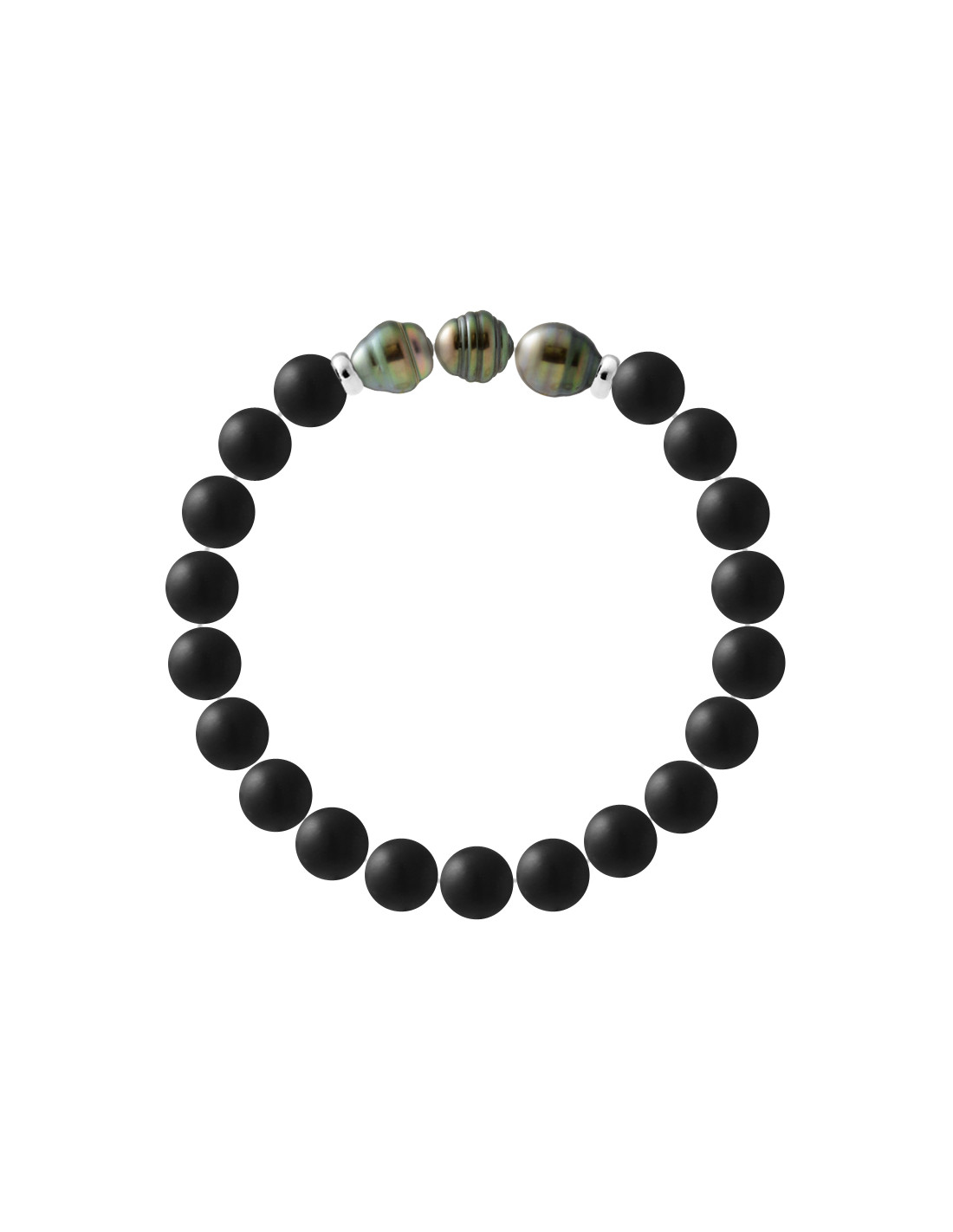 Pulsera 3 Tahiti Beads Circled en Negro Agate Mate - Silver 925 - Taenga