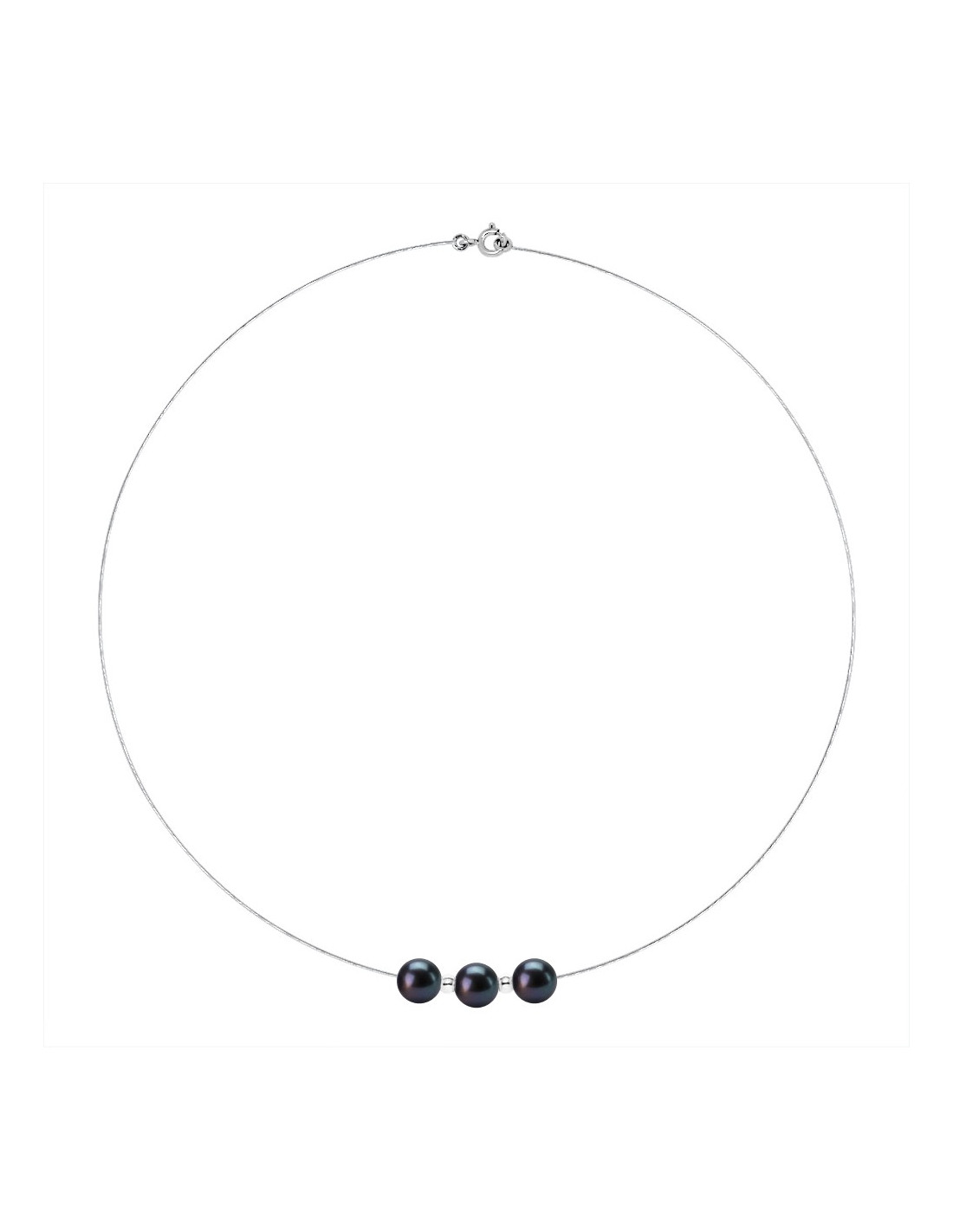 Collar de cables de oro blanco y 3 perlas alternas reales