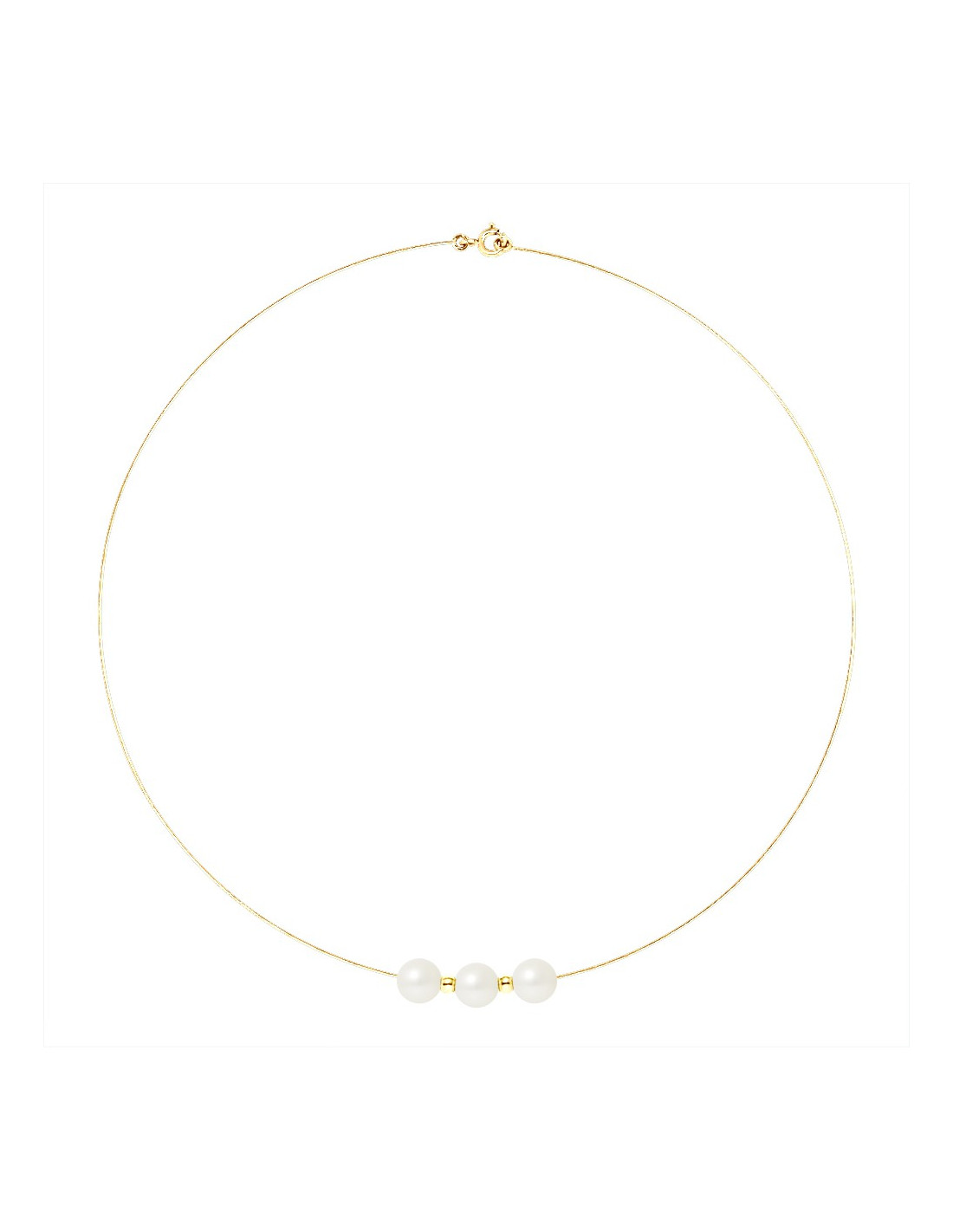 Collar de cables de oro blanco y 3 perlas alternas reales