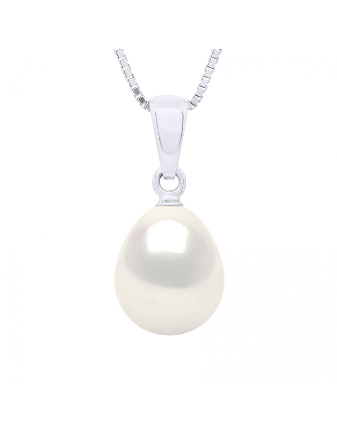 Colgante de oro amarillo o oro blanco y pera 8 mm perla pera - 2 colores - ornella