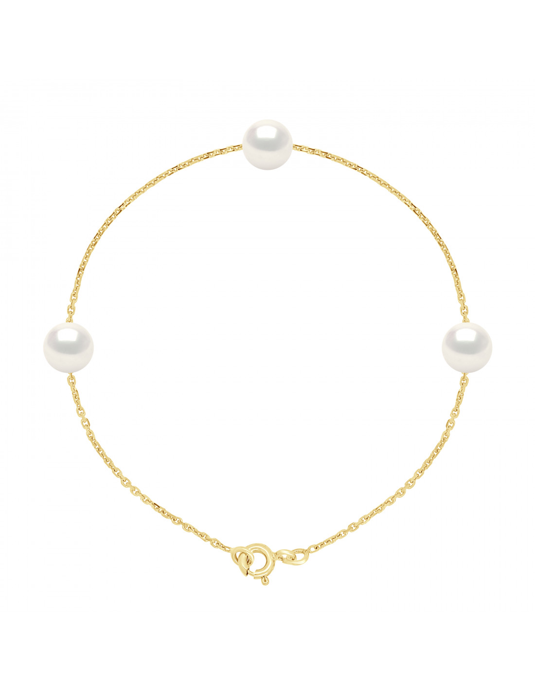 Pulsera de cadena de oro con 3 cuentas de cultivo redondo - 2 colores - Ines