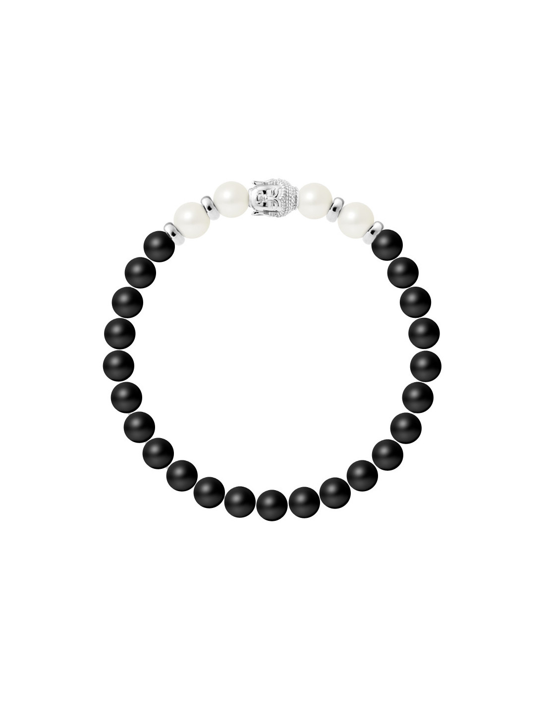 Buddah Pulsera Cultura Blanca Beads 6-7mm y ágata negra en 925 - Buddah