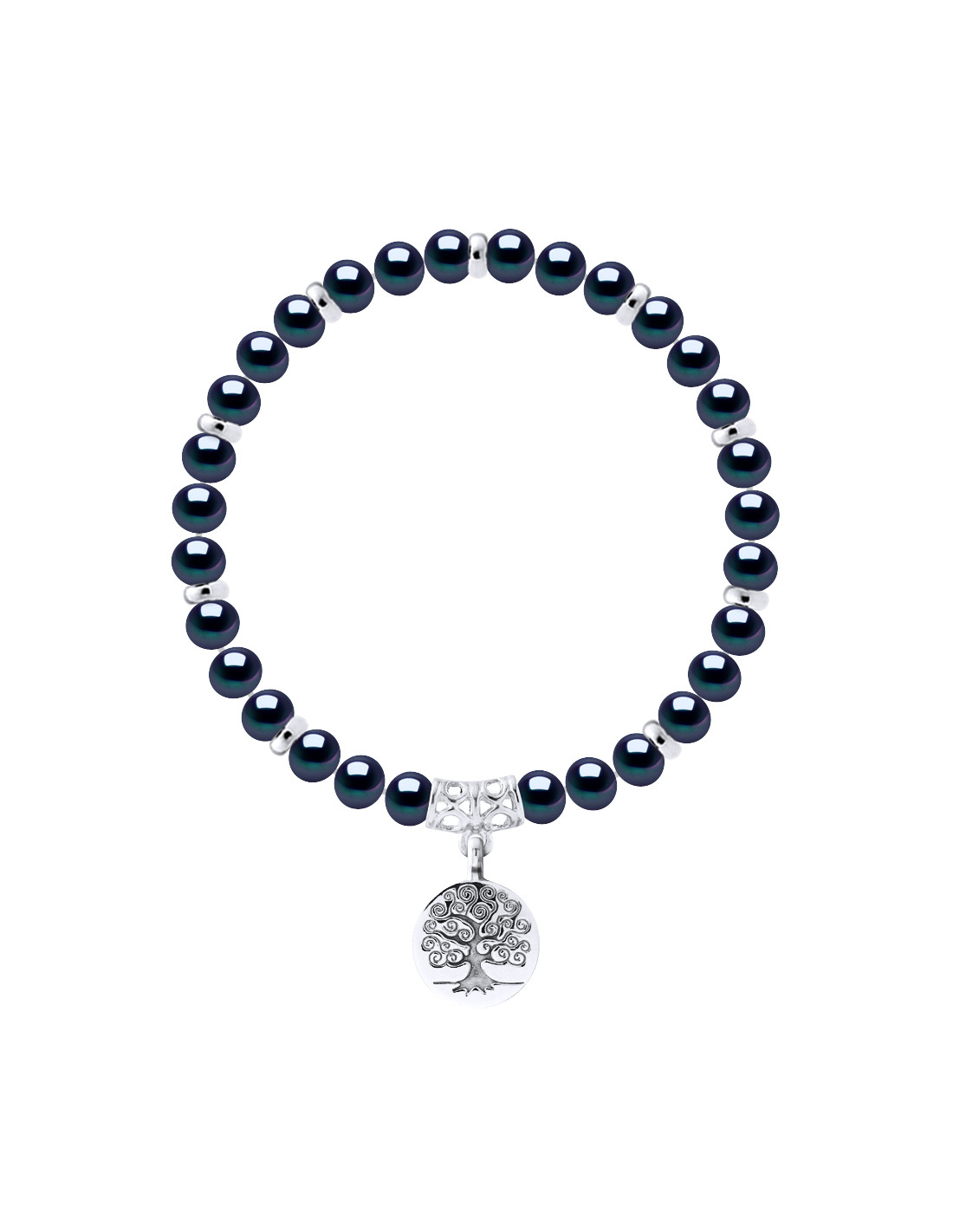 BREWS BRELEPER Cultura por debajo de las rondas semi de 6-7 mm en plata 925 - Árbol vivo negro