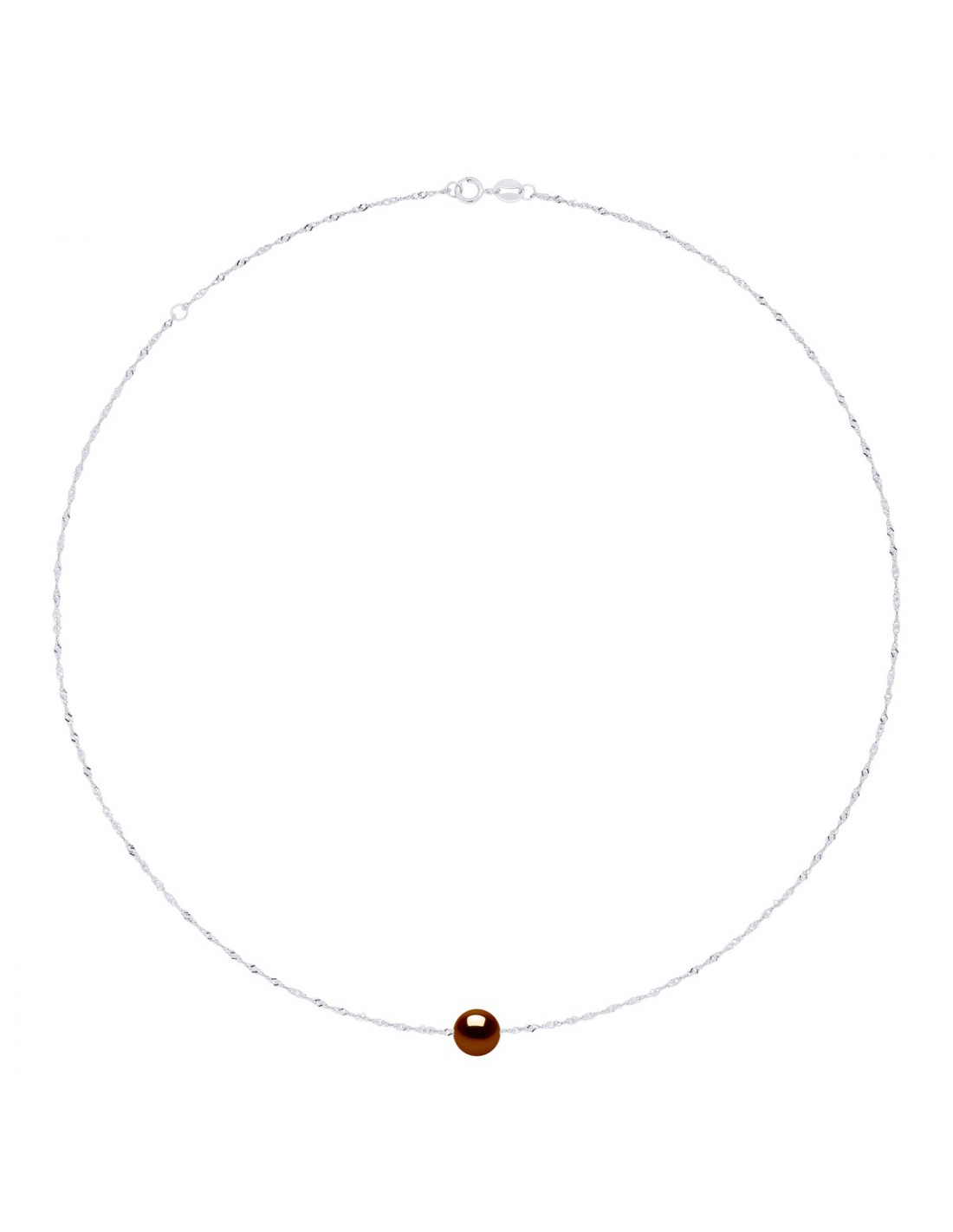 Collier Chaîne Singapour en Argent 925 et Perle de Culture Ronde 8 mm - 7 Coloris - JADA