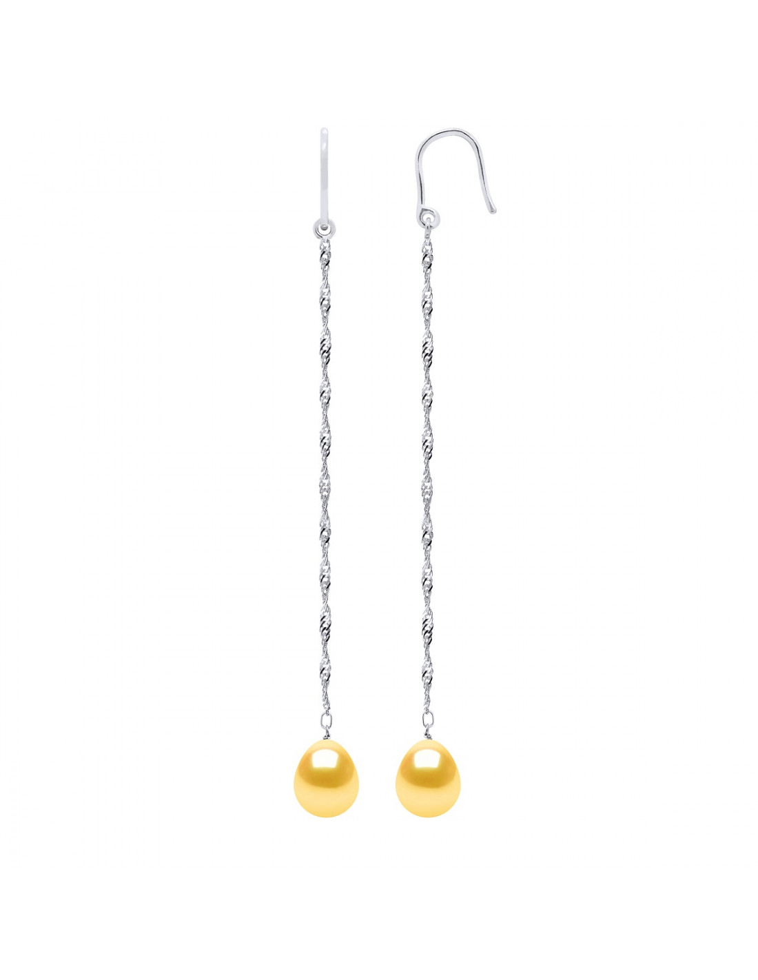 - Boucles d'Oreilles Pendantes Véritables Perles de Culture d'Eau Douce Poires 7-8 mm