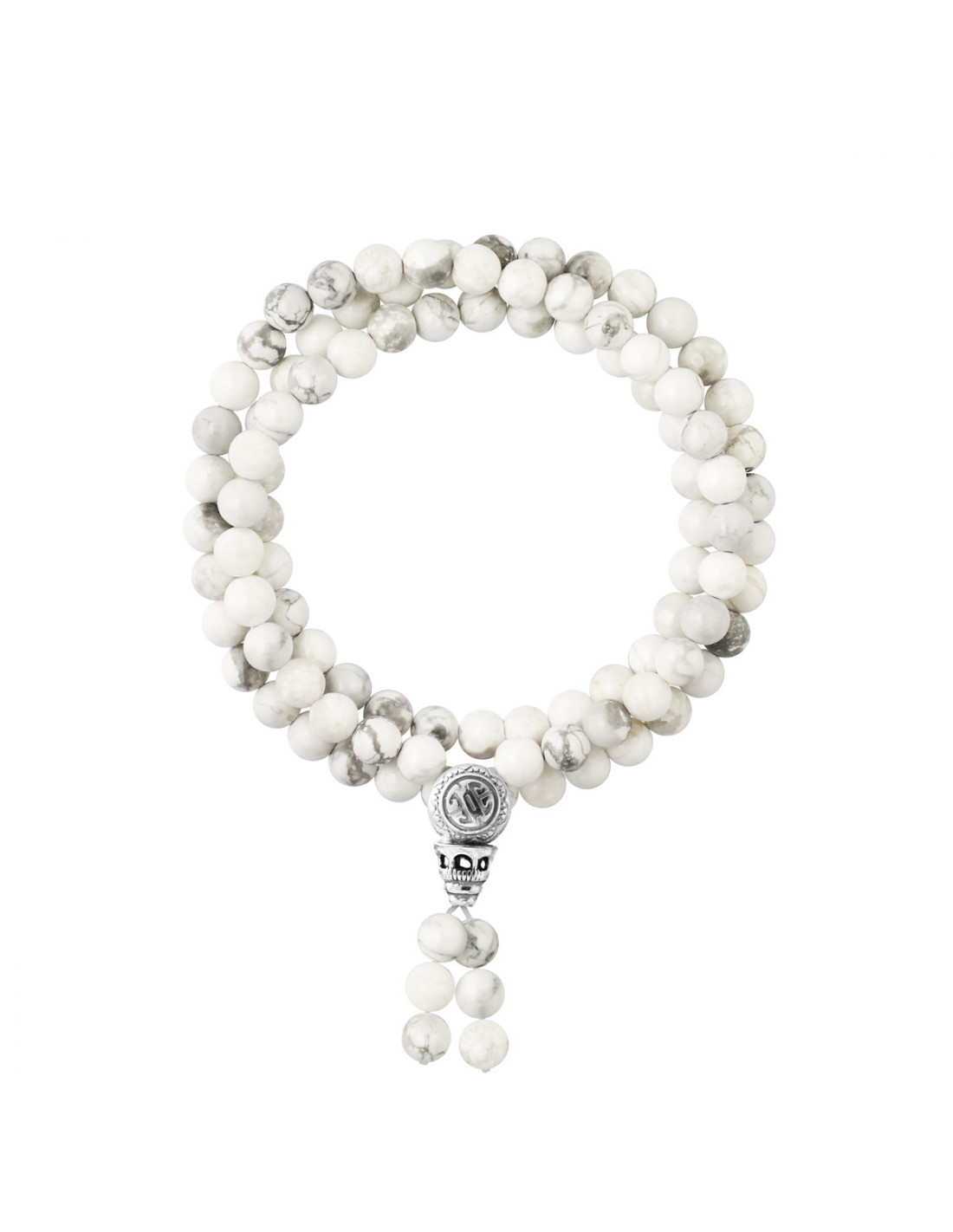 Braccialetto Tibetano Tripla Rank in Natural White Howlite - 925 fermaglio in argento - OYA