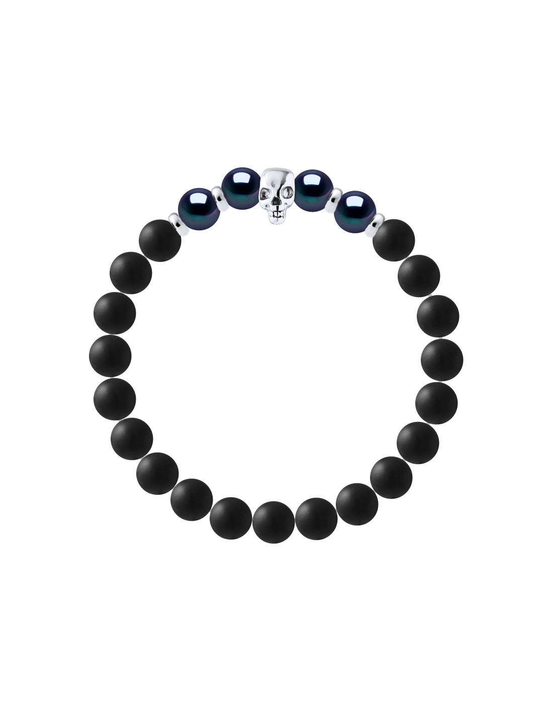 Braccialetto Capo delle perle di coltura nera morta in Agata nera Mattea - Argento 925 - NOPI