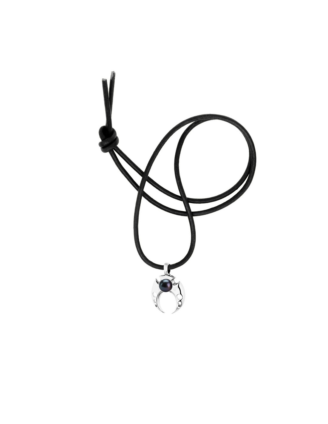 Collana - Colori Link - Colori Black - Rhodium Argento Argento Argento Pendente tribale 925 millesimi Rodium con una vera cultura di acqua dolce da 9 mm perla - Colore nero Tahiti - Viene fornito con certificato di autenticità e garanzia internazionale - Fabbricazione nei nostri workshop